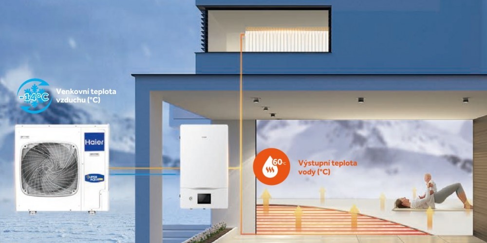 A+++/A++ (při teplotě vody 35/55 °C) , teplota vody až 60 °C i při -14 °C, pokud začne být venkovní teplota extrémní, je možné využít vestavěného záložního elektrického zdroje až 4 kW. Vlastníte-li například starý plynový kotel můžete využít i funkci bivaletního zdroje tepla a řídící jednotka Haier umí automaticky vše ovládat a přepínat. Provoz je možný i při venkovní teplotě -25 °C.Čím může překvapit teplené čerpadlo Haier HE?