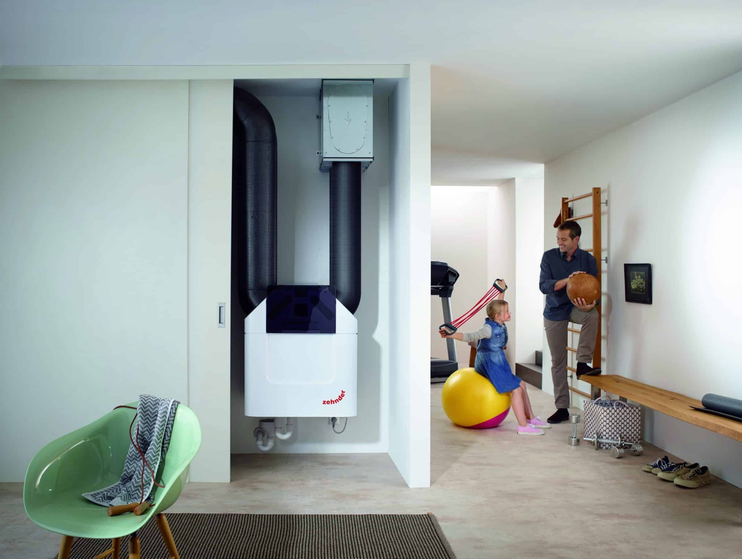 Součástí závěsného řešení KombiAir pod strop či na stěnu je spolehlivá větrací jednotka @Zehnder. Ta vyniká energetickou účinností až 95%, nízkou spotřebou a výjimečně tichým povozem. Díky entalpickým výměníkům je navíc udržována na optimální hladině vlhkost v interiéru. Patentovaná vrstva Microban® čistí přiváděný vzduch od veškerých pachů, nečistot, mikrobů a plísní. Čistý vzduch zajišťuje i patentovaný hladký povrch rozvodů Clinside, který aktivně snižuje usazování prachu. Hvězdicovité uspořádání rozvodů navíc i po letech zajišťuje jeho snadné čištění. Jasným vodítkem pro spotřebitele je i ocenění renomovaným nezávislým německým institutem PassiveHouse Darmstadt.