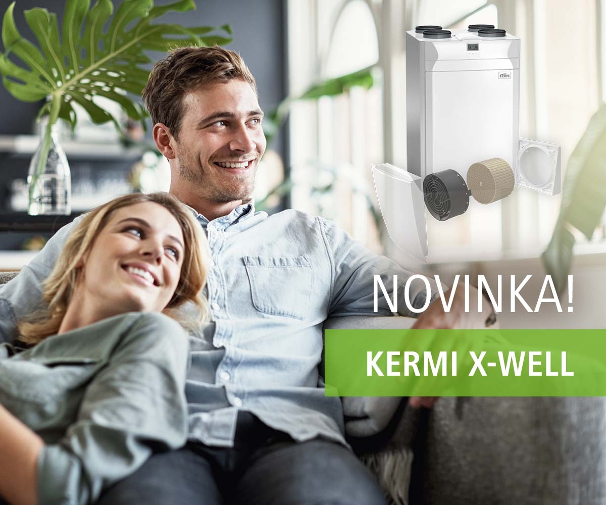 S větracími systémy Kermi x-well lze zajistit optimální pocit pohody v místnosti v každém ročním období. Jak u centrálních, tak i decentrálních větracích jednotek zajišťuje integrovaný systém přenos tepla s co nejnižšími tepelnými ztrátami. Znehodnocený vzduch je díky řízenému systému větrání odváděn z interiéru spolu se vzdušnou vlhkostí do venkovního prostředí a je nahrazen suchým čerstvým přiváděným vzduchem z exteriéru.