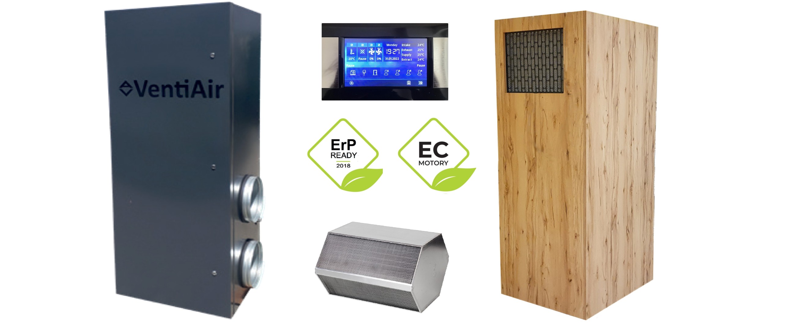 VentiAir je českým výrobcem sestavných a kompaktních vzduchotechnických jednotek všeho typu. Vyrábíme zařízení pro větrání, klimatizaci, vytápění, chlazení, rekuperaci, zvlhčování a filtraci atmosférického vzduchu o průtoku od 200 až 130 000 m³/h.