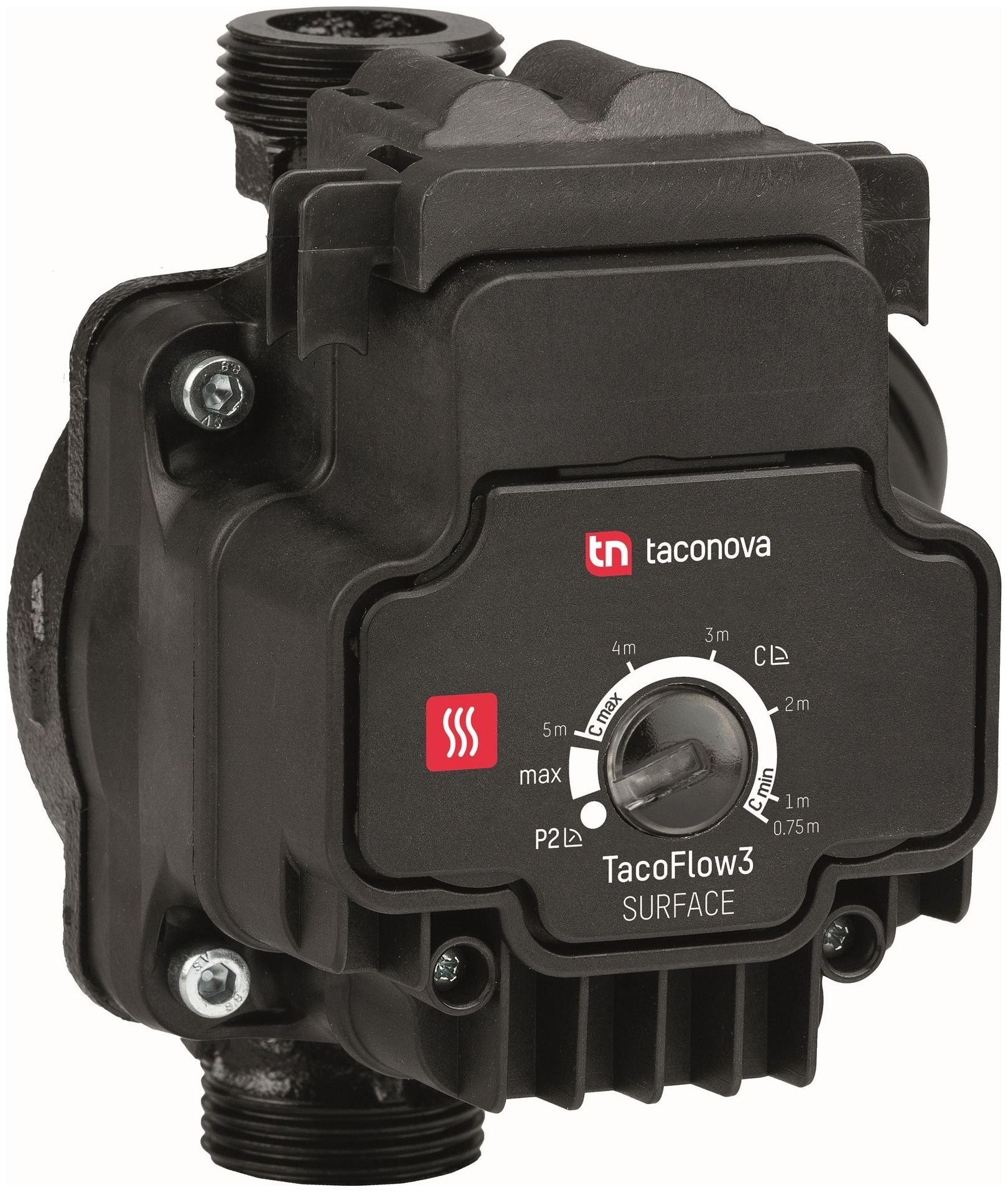 Díky třetí generaci technologie Taco a dalším inteligentním funkcím je TacoFlow3 Surface ideálním řešením pro systémy podlahového vytápění. Ve spojení s hydraulickými vyvažovacími ventily, jako je osvědčený TopMeter, zajišťuje nové oběhové čerpadlo dokonale vyvážený systém podlahového vytápění.