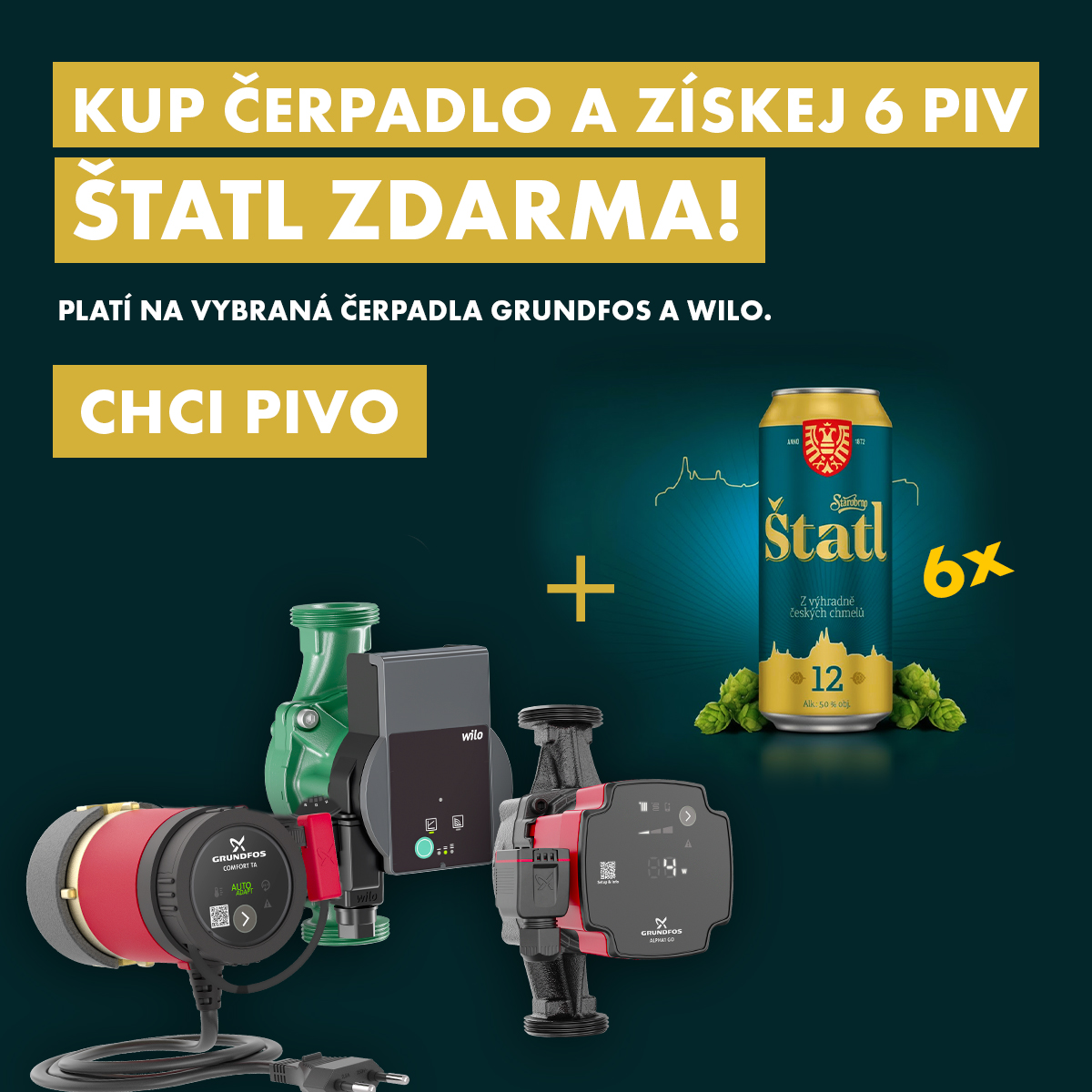 - Za každé zakoupené oběhové čerpadlo GRUNDFOS nebo WILO dostanete dárek – 6 piv ŠTATL zdarma.