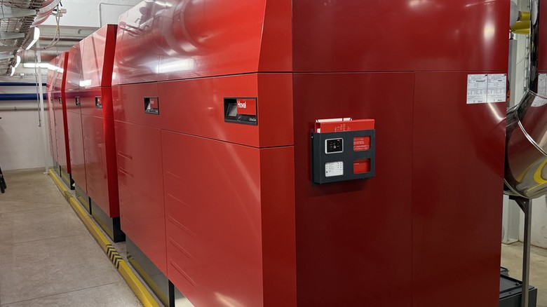 Instalované kondenzační kotle Hoval UltraGas 2 patří mezi špičku v oblasti velkokapacitního vytápění. Jejich vysoká účinnost je dána mimo jiné patentovaným výměníkem tepla aluFer, který dokáže maximálně využít energii obsaženou ve spalinách. Díky tomu je provoz nejen úsporný, ale i výrazně ekologičtější.