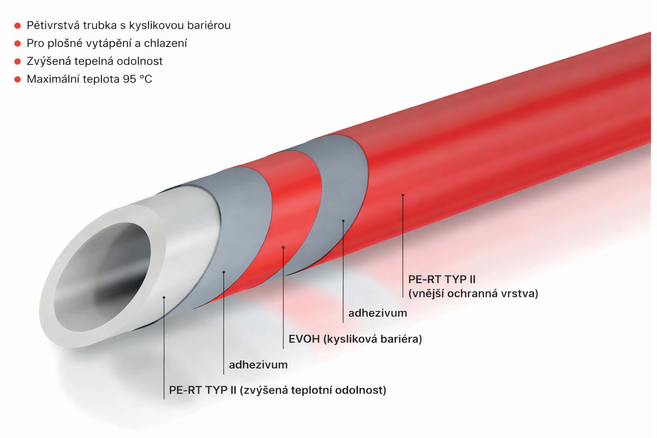 Teplovodní podlahové vytápění je nejen trendy, ale také velmi efektivní. Aby se však investice do systému skutečně vyplatila, je velice důležitá správná volba komponent. Na trhu existuje mnoho variant plastových trubek, které dělíme na celoplastové a plastohliníkové. Samotný plast je difuzní pro molekuly kyslíku, které v nízkoteplotních systémech působí značné škody.