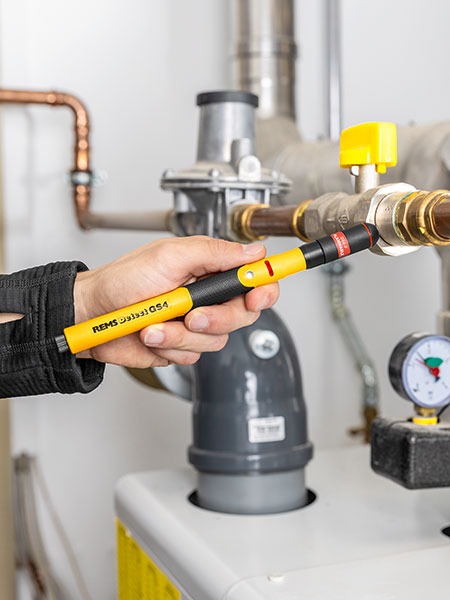 REMS Detect GS4 Set – elektronický detektor úniků s rychlovýměnným plynovým senzorem, tvarovatelným prodloužením 200 mm, 2 bateriemi 1,5 V, AAA, LR3. V pevném látkovém pouzdru.