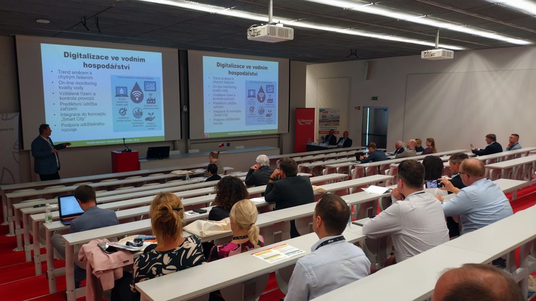 Hojně diskutována byla také integrace umělé inteligence a digitálních dvojčat. Věnoval se jí například Ing. Pavel Dobiáš ze společnosti ENVI-PUR, který si ve své přednášce kladl za cíl ukázat v praxi digitální synergii a popis holistického přístupu a mezioborové spolupráce mezi institucemi, projektanty a provozovateli. „Bez provázání vědy, inženýrství a chytrého provozního managementu zůstane potenciál membránových technologií zcela nevyužit. V opačném případě však představují cestu k udržitelné produkci pitné vody v podmínkách klimatické i ekonomické nejistoty,“ uvedl a pozval účastníky konference na exkurzi do Úpravny vod Hrobice, kde byla instalována nová membránová technologie namísto té starší.