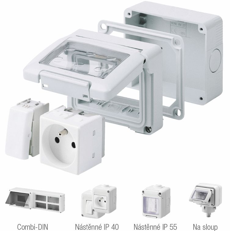 Modulární systém 27 COMBI je konstruován pro univerzální použití v bytových i průmyslových instalacích. Nabízí varianty:
