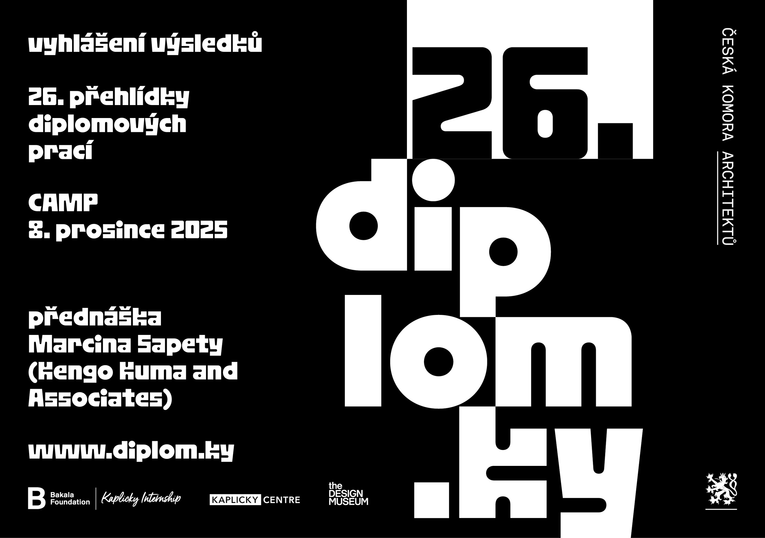 Do letošního ročníku soutěžní přehlídky DIPLOM.KY přihlásilo své úspěšně obhájené závěrečné projekty 114 absolventů z českých architektonických škol. Při hodnocení jsme kladli důraz na komplexnost řešení, kvalitu architektonického a urbanistického návrhu, technické zpracování, grafickou prezentaci i společenskou a environmentální relevanci zvoleného tématu. Mezi diplomovými pracemi jednoznačně dominovala témata udržitelnosti, recyklace, dostupného bydlení, komunitní integrace či vztahu města a krajiny. Ocenění diplomanti prokázali schopnost přistupovat k úlohám s velkou odbornou jistotou a jejich projekty potvrzují, že české architektonické školy vychovávají autory připravené reagovat na současné výzvy společnosti i prostředí, v němž žijeme,“ zhodnotila letošní ročník předsedkyně poroty.