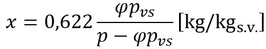 V případech, kdy je zapotřebí vyjádřit bilanci vodní páry ve vzduchu, se používá měrná vlhkost (x) definovaná následujícím vztahem:
