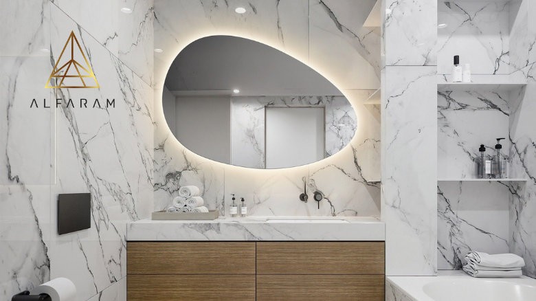 Zrcadlo s nepravidelným tvarem s podsvícením – SYDERYT LED. Foto: Alfaram