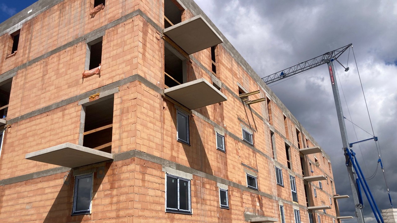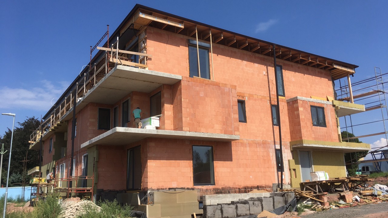 HELUZ ověřil funkčnost řešení na bytovém domě se stěnami z jednovrstvého zdiva HELUZ FAMILY 44 a železobetonovým stropem tloušťky 250 mm. Mezibytové stěny byly provedeny z cihel HELUZ AKU 30 MK, vnitřní akustické příčky z cihel HELUZ AKU 11,5. Zdění probíhalo na běžnou maltu.