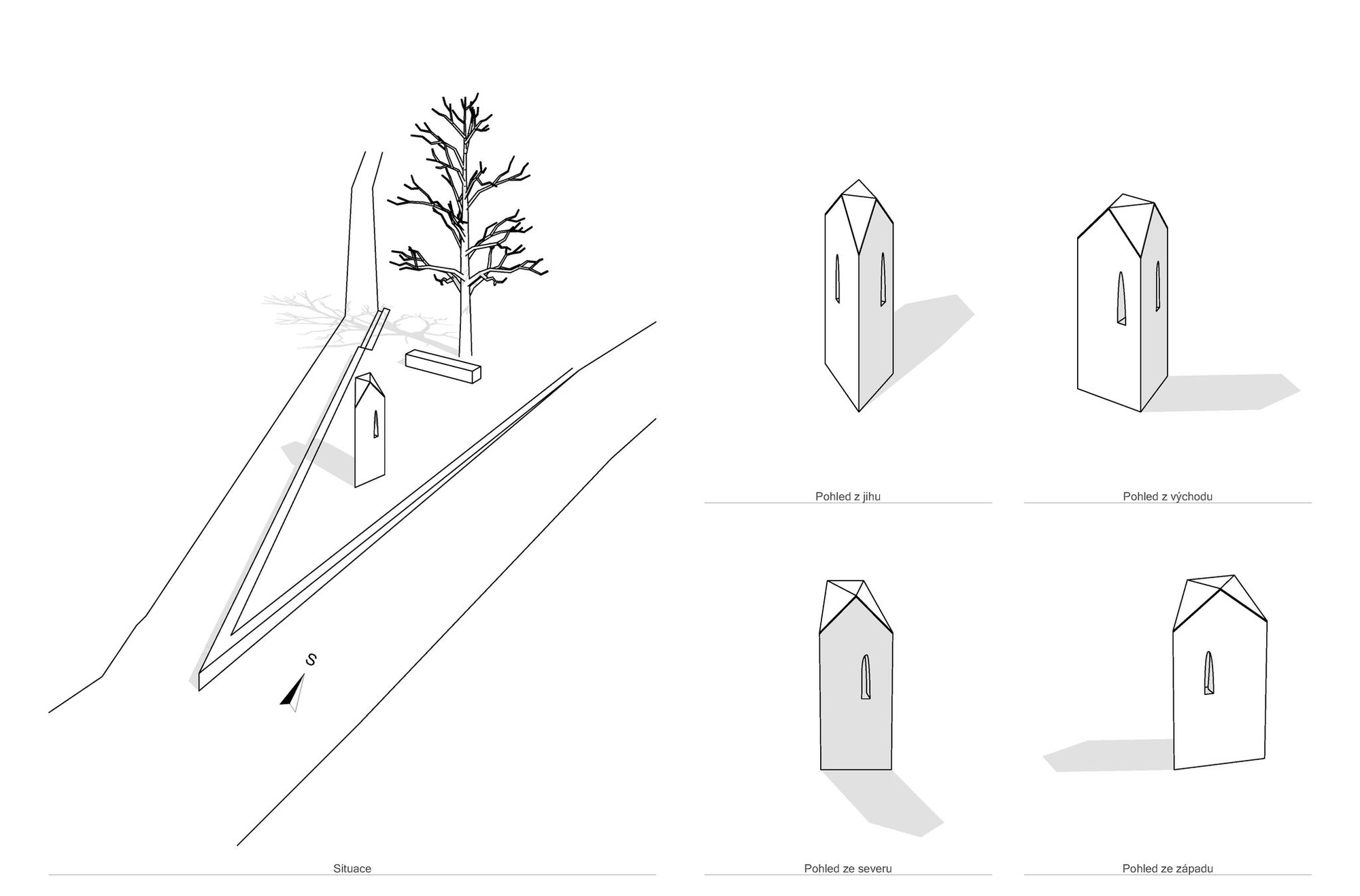 Záměrem návrhu nové kapličky je obnovit paměť krajiny v tomto místě, a to skrze vytvoření kaple, která je tvarována tak, že její hrany odpovídají původnímu rozvětvení a směru cest. Tvar a zejména provedení nově navržené kaple pak odkazuje na tradiční provedení kaplí v okolí. Díky svému tvaru pak nově navržená kaple rovněž mírně připomíná starý rozcestník, který je ještě dnes občas u některých cest k vidění.