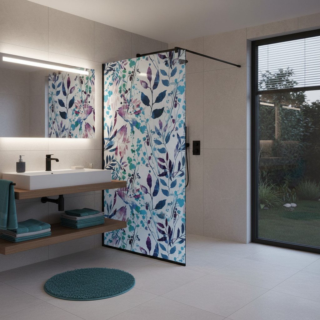 - Digitální potisk skla – přesné přenesení grafických motivů, fotografií či firemních vizuálů s vysokou stálostí a odolností.