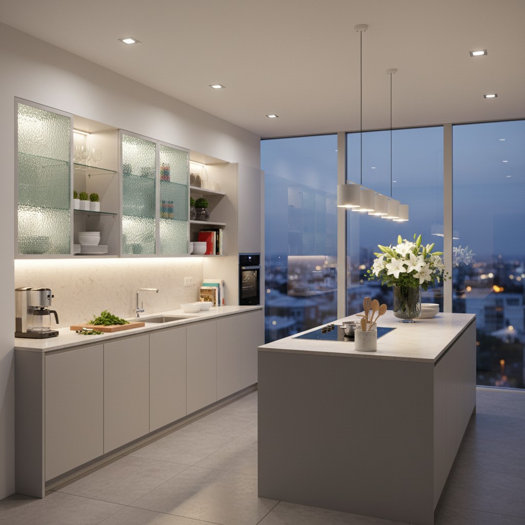 - Ornamentní skla – strukturované povrchy a vzory pro řízení průhlednosti a členění prostoru.