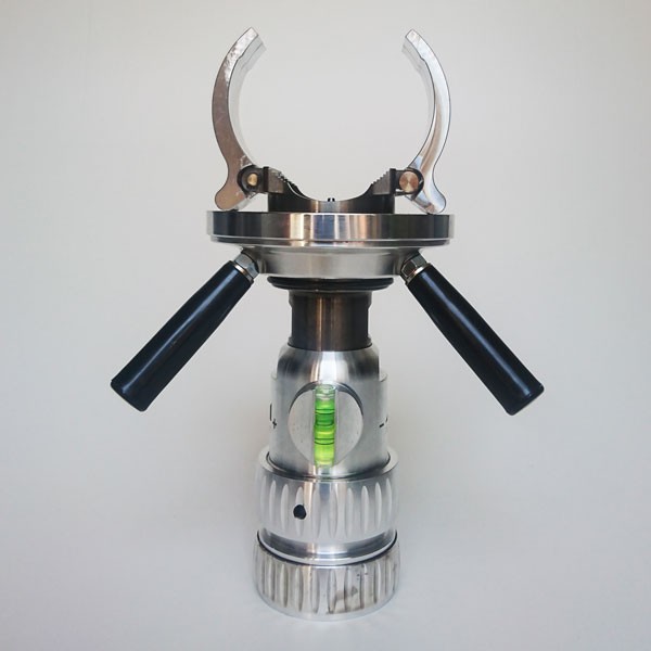 Adaptér uchopí trubku pomocí chlopní a umožní vám pokaždé vrtat díru na určené místo. Chopit se přizpůsobí požadovanému průměru vrtané trubky a operátor je jednoduše dotáhne pomocí rukojetí.