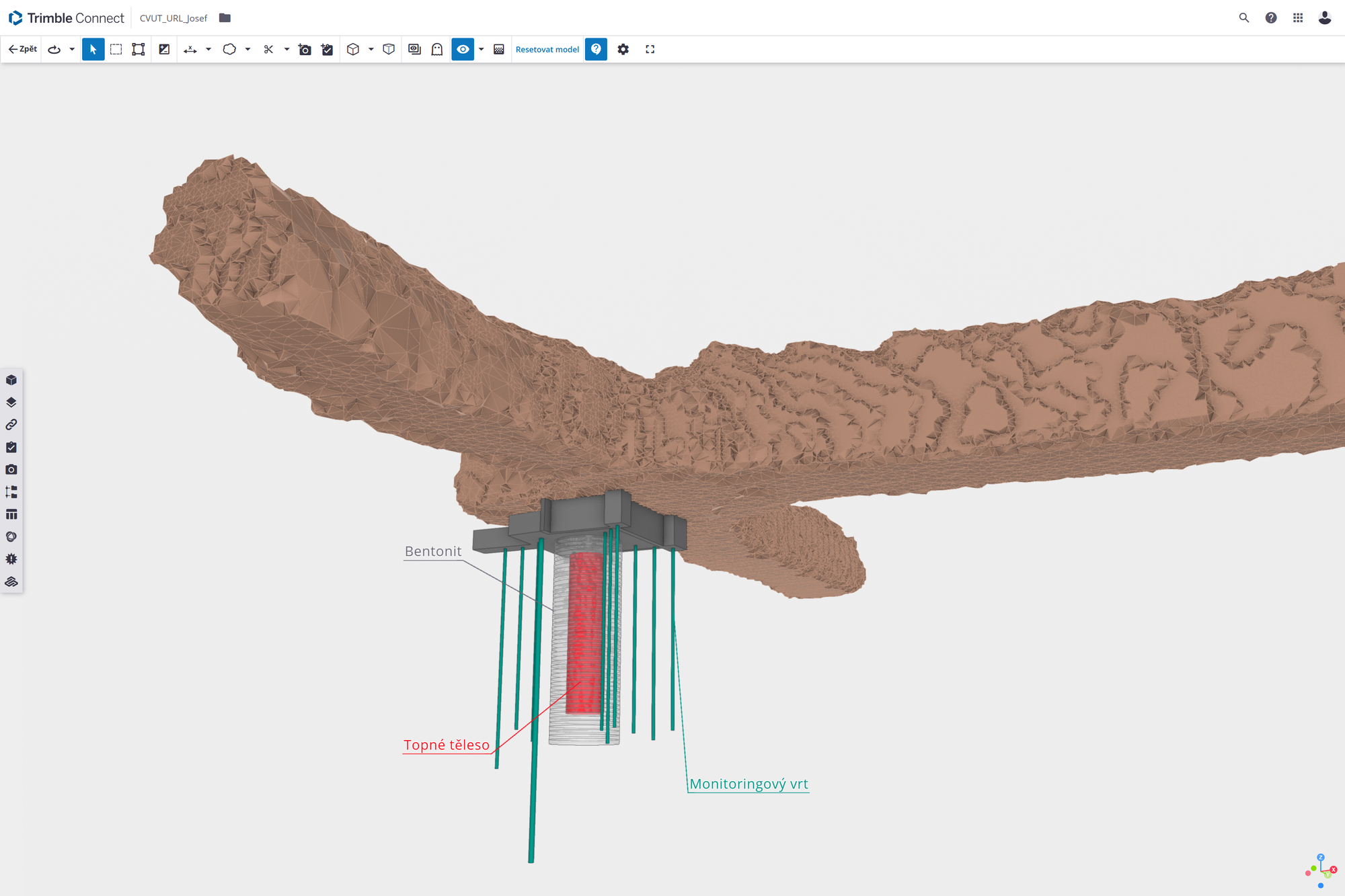 To je klíčové především při plánování těchto experimentů. K jejich provedení je potřeba využití těžké vrtné a stavební techniky. V BIM modelu lze dopředu provést analýzy přístupu a přesného umístění experimentu.