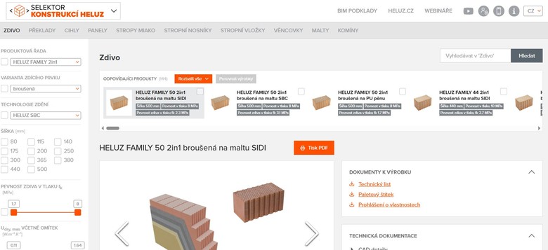 Zpřehledněna byla rovněž oblast BIM podkladů. HELUZ dlouhodobě nabízí kvalitní BIM knihovny pro software Revit a ArchiCAD, včetně pokročilých nástrojů, jako je Cihla 4.0 nebo doplněk pro automatizovaný návrh překladů a doplňkových cihel kolem stavebních otvorů. Samostatná stránka BIM podkladů poskytuje nejen soubory ke stažení, ale také podrobné informace o jejich správném využití v projektové praxi. Stránka je určena projektantům, architektům i studentům stavebních oborů.