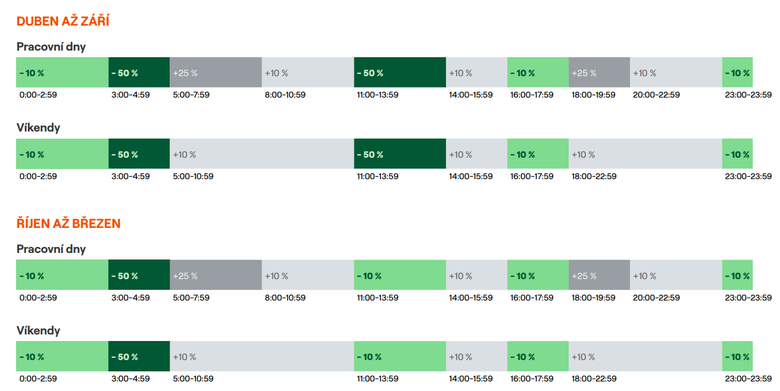 Přes poledne a v noci levněji