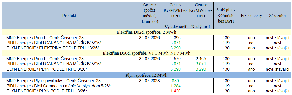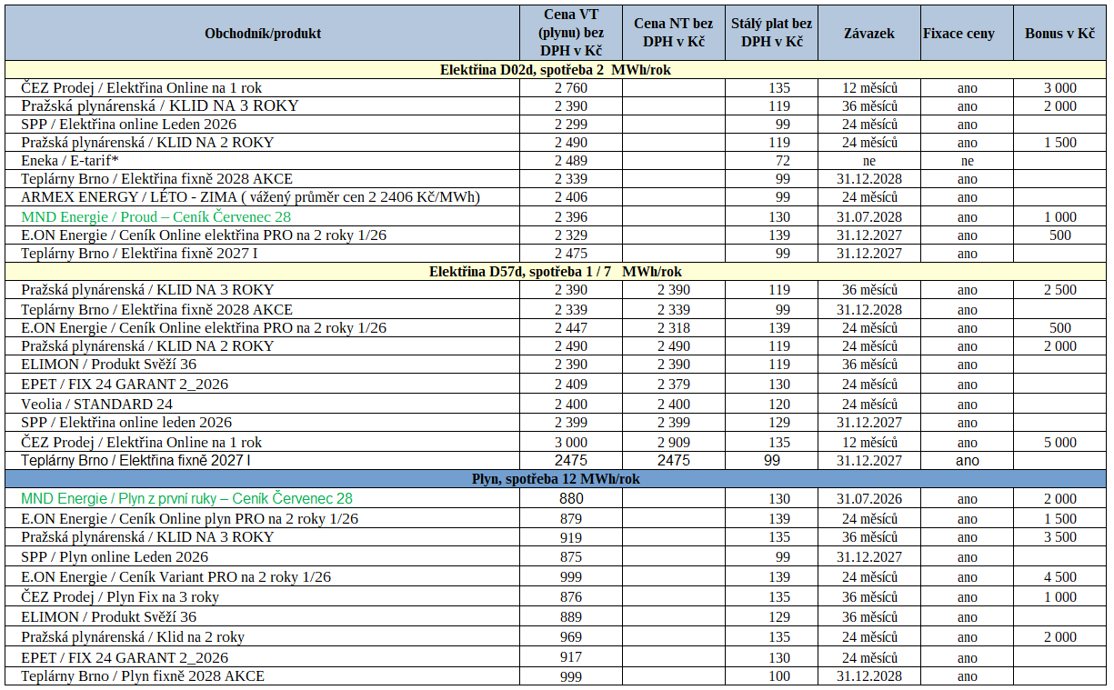 Snížené dodávky plynu do Evropy z Blízkého východu se zatím v České republice téměř vůbec neprojevily na změnách v nabídkách dodavatelů v uplynulém týdnu. Nejpodstatnější změnou pro domácnosti je aktualizovaná nabídka společnosti MND Energie u plynu, která oslovuje jednak nové, tak i stávající zákazníky, pokud jim v dohledné době končí původní závazek. V ceníku Plyn z první ruky – Ceník Červenec 28 obchodník pokračoval ve snižování cen plynu, v nové nabídce je plyn za 880 Kč/MWh, proti červnové verzi je plyn levnější o 48 Kč/MWh. K této nabídce při sjednání smlouvy online dostane zákazník ještě bonus 2 000 Kč. Díky ceně se tarif v naší tabulce nejvýhodnějších nabídek při roční spotřebě 12 MWh dostal na pozici nejlepší nabídky. Obchodník jako vždy současně aktualizoval podobnou nabídku elektřiny, ale u ní MND ceny neměnily.