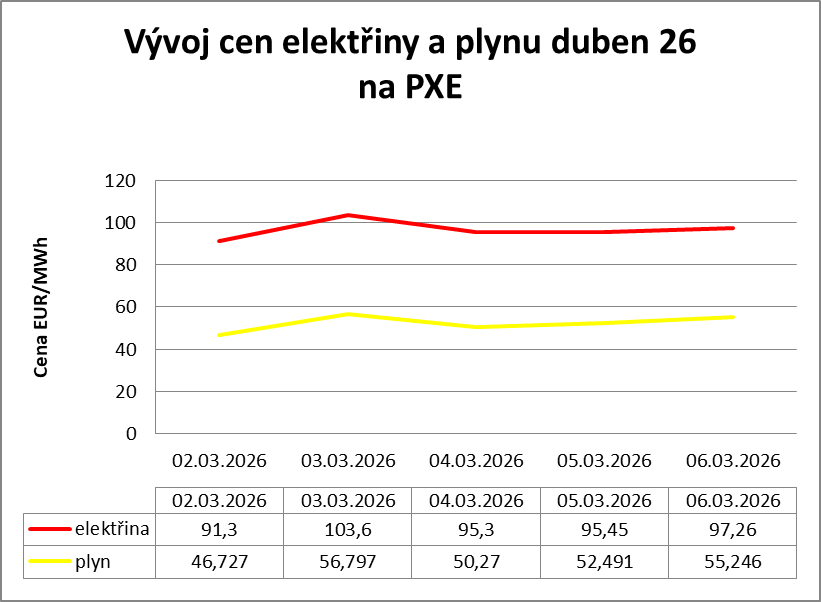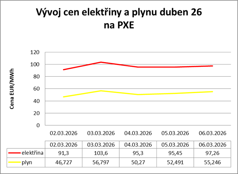 Kvůli válce v Íránu začaly silně růst ceny plynu a i elektřiny na burzách v ČR. V následujícím grafu je vývoj cen na burze PXE v měsíčním kontraktu na duben v jednotlivých dnech.