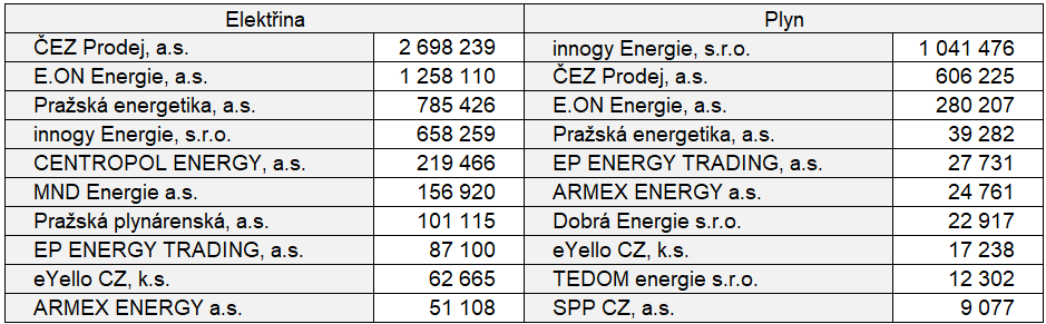 Více jak polovina dodavatelů elektřiny za uplynulých 12 měsíců zvýšila počet odběrných míst. Situace je jiná u plynu, kde pouze pouhá třetina dodavatelů zvýšila počet zákazníků. Nejvíce se dařilo většině velkých dodavatelů a také obchodníkům s jasnou a dlouhodobě výhodnou obchodní strategií.