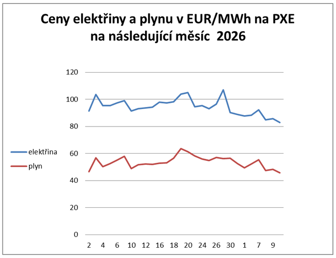 Podívejme se ještě na průběh cen elektřiny a plynu od začátku íránské krize. V grafu jsou uvedeny ceny elektřiny a plynu na burze PXE u kontraktů na následující měsíc. V současné době jsou ceny podobné jako na začátku krize.