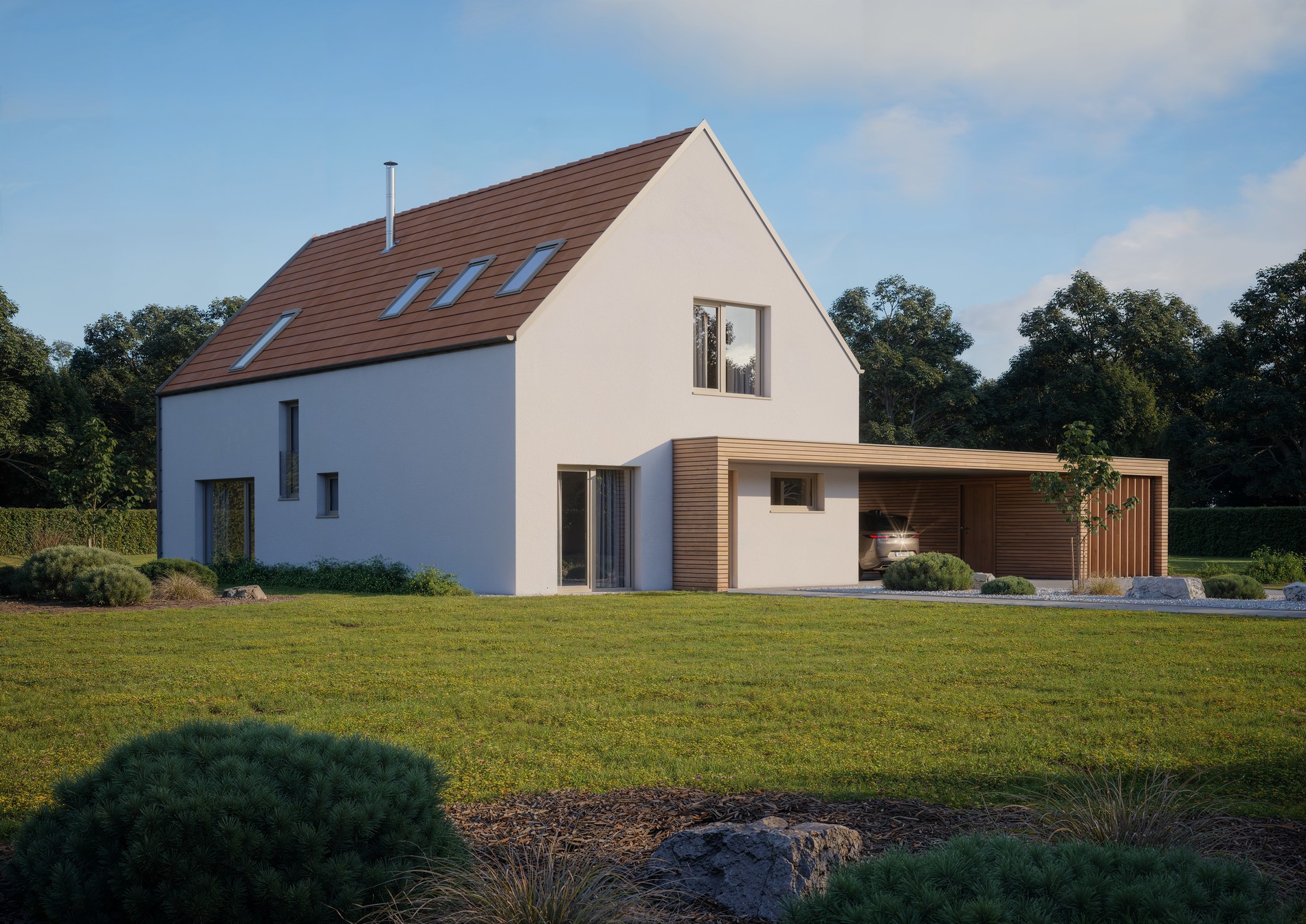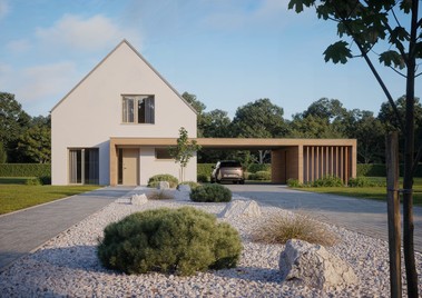 Smysluplné domy HELUZ jsou v nabídce společnosti od letošního roku a jedná se o projekty, které mají za cíl zjednodušit a urychlit cestu ke kvalitnímu a energeticky efektivnímu bydlení. Balík Smysluplného domu HELUZ obsahuje ucelenou projektovou a prováděcí dokumentaci, ale rovněž manuál pro výstavbu, návrh interiéru a nákupní seznam všech použitých položek. „To pro nás představovalo obrovskou úsporu času, nemuseli jsme náš dům měsíce plánovat,“ přibližuje paní Nikola jednu z hlavních výhod konceptu Smysluplných domů, která je oslovila. Společně s tím ale řadí na první místa rovněž vzhled a dispoziční řešení. „Vzhled domu nás zaujal na první dobrou. Přáli jsme si moderní dům, který citlivě zapadne do okolní zástavby. Naprosto zásadní pro nás byla rovněž dispozice domu. Když jsme hledali projekt, viděli jsme spoustu hezkých návrhů, ale dispozice vždycky měla nějaké nedostatky. Až v případě domu SPACE jsme byli naprosto spokojeni. Je pojatý přesně tak, jak jsme o domě uvažovali od počátku,“ vysvětluje Nikola. „Usnadnilo nám to práci také v tom, že jsme získali dokumentaci, se kterou nebude problém z hlediska tuzemské legislativy,“ doplňuje Tomáš.