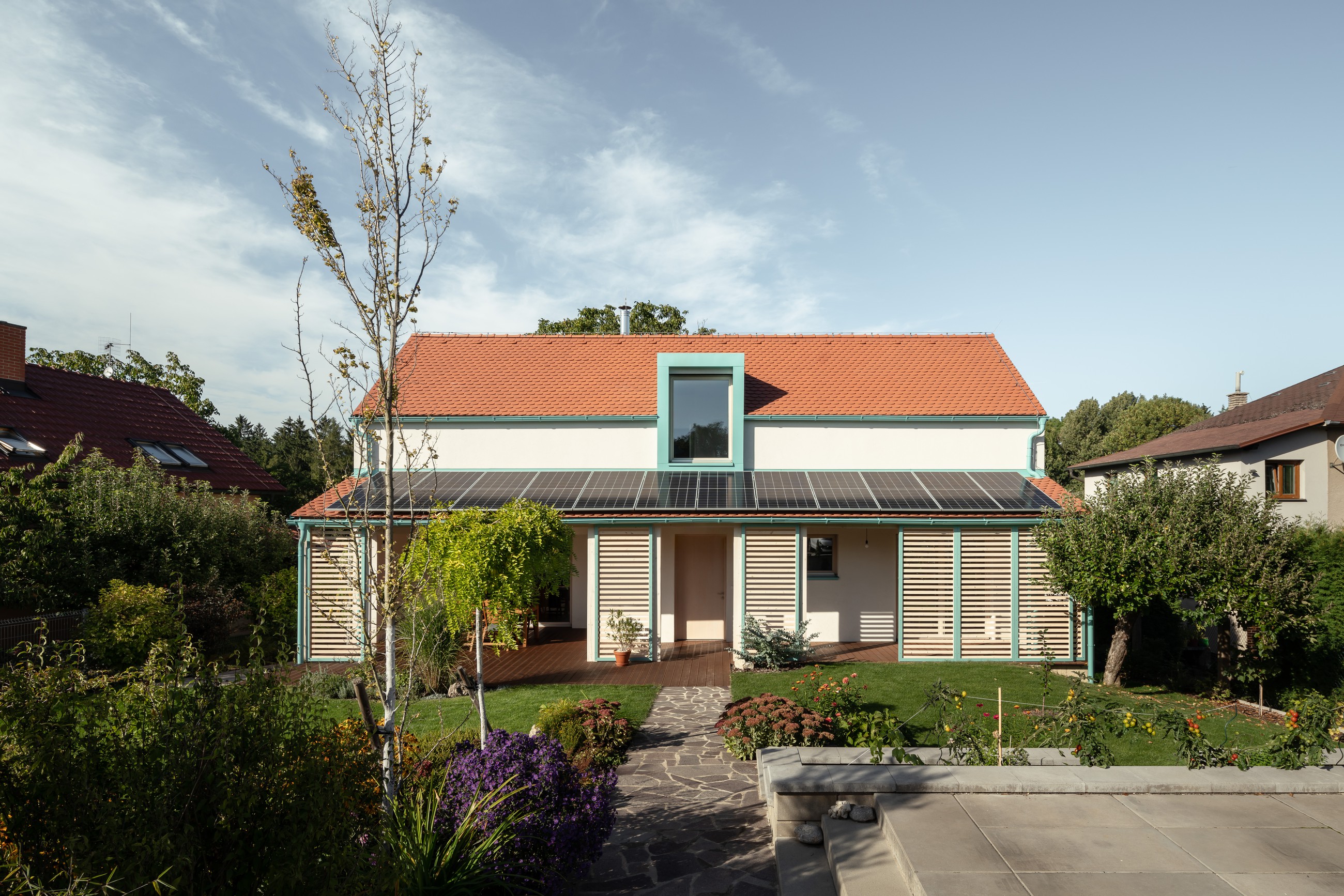 „Chtěli jsme ukázat, že i moderní rodinný dům lze citlivě zasadit do prostředí venkovské zástavby. Svým tvarem i proporcemi navazuje na tradiční domy s úzkou stopou, ale zároveň využívá moderní materiály a technologie. Barevně zvýrazněná ostění oken a promyšlené zpracování terasy dodávají domu osobitost a funkčnost. Dům nepůsobí rušivě a je přínosem nejen pro své obyvatele, ale i pro okolí,“ říká architekt Adam Cigler z ateliéru Chrama.