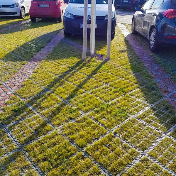 Velkou výhodou je také šetrnost instalace. Konstrukce zasakovacích roštů je samonosná, proto nevyžaduje výrazné úpravy terénu ani hluboké výkopy. To je zásadní v případech, kdy se pracuje v blízkosti existujících stromů a je třeba vyhnout se poškození kořenů. Nízká výška konstrukce navíc umožňuje zachovat původní profil terénu a přirozené proudění vody v půdě. Díky speciálním spojovacím zámkům se rošty jednoduše sestavují do stabilního celku, který má dostatečnou únosnost i pro pojezd vozidel.