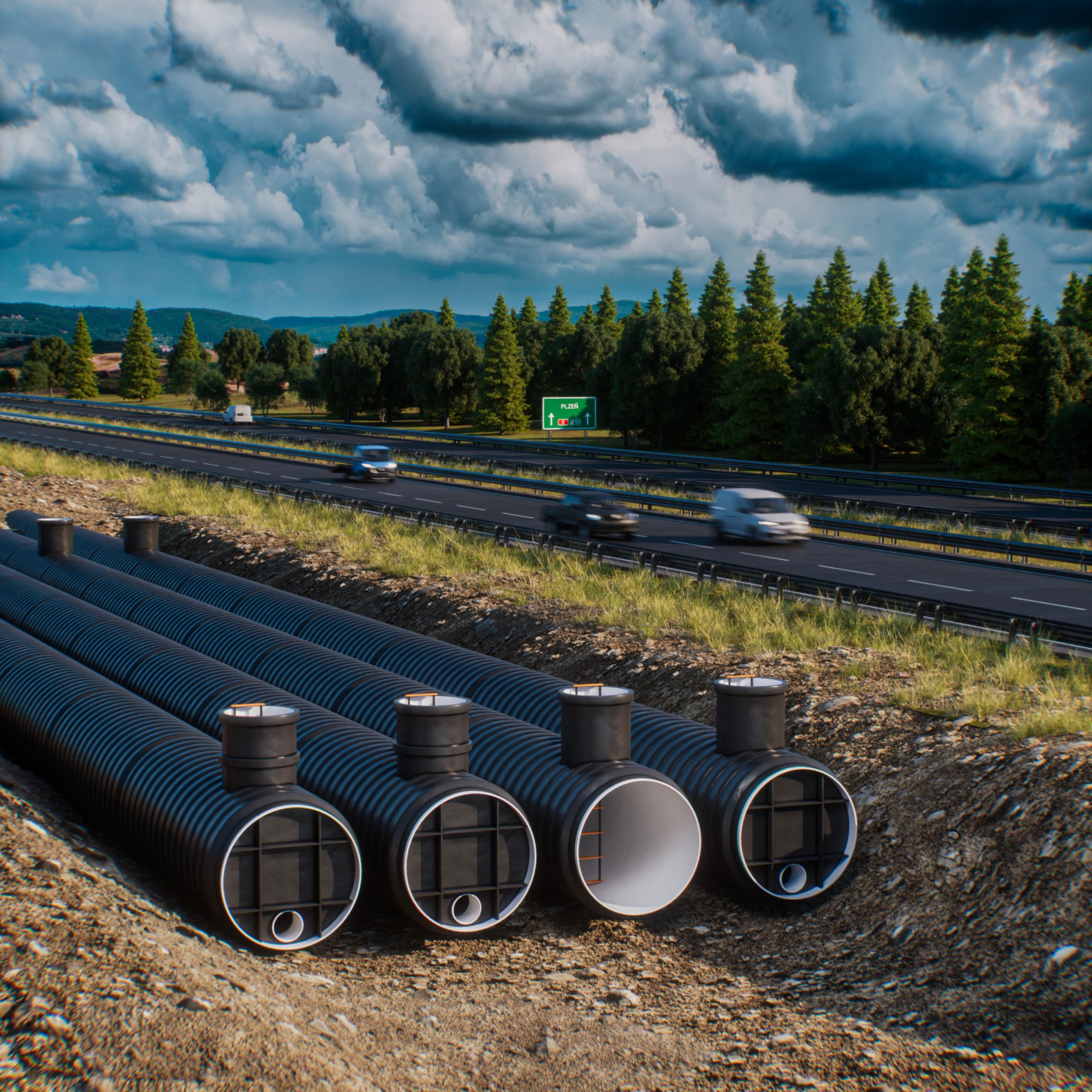 Díky dimenzím DN/ID 800 až 2500 lze navrhovat retenční nádrže na míru konkrétním projektům – nádrže lze přizpůsobit požadovanému objemu, hydraulickým podmínkám i konkrétní situaci na stavbě.