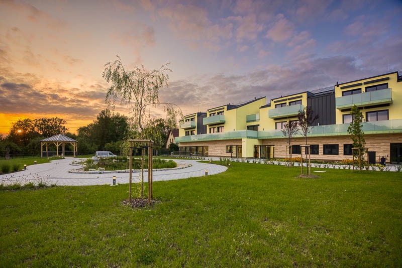 Velký důraz byl kladen také na venkovní prostory. Ty jsou navrženy tak, aby byly bezpečné, přehledné a snadno přístupné pro všechny obyvatele domova.