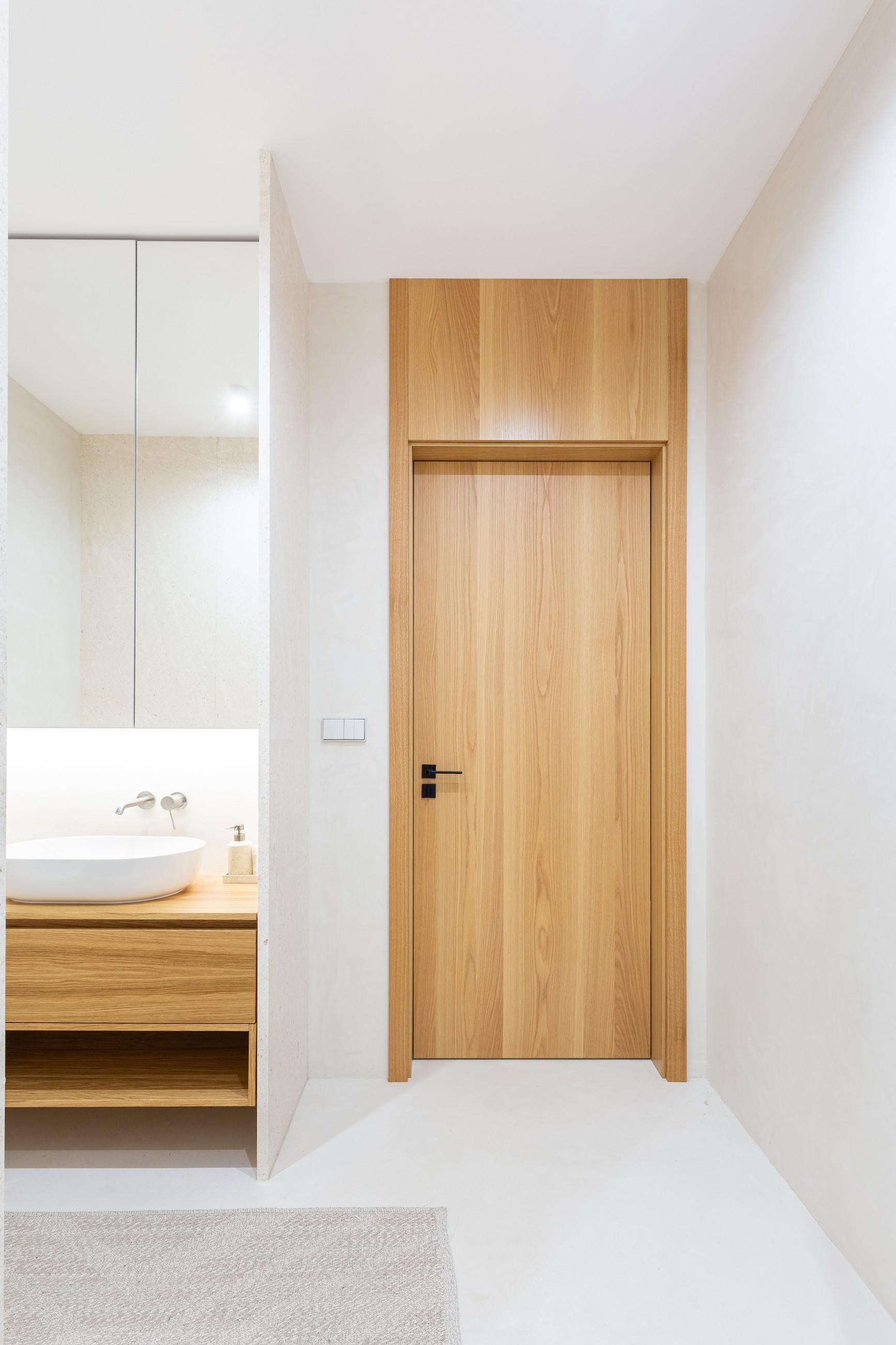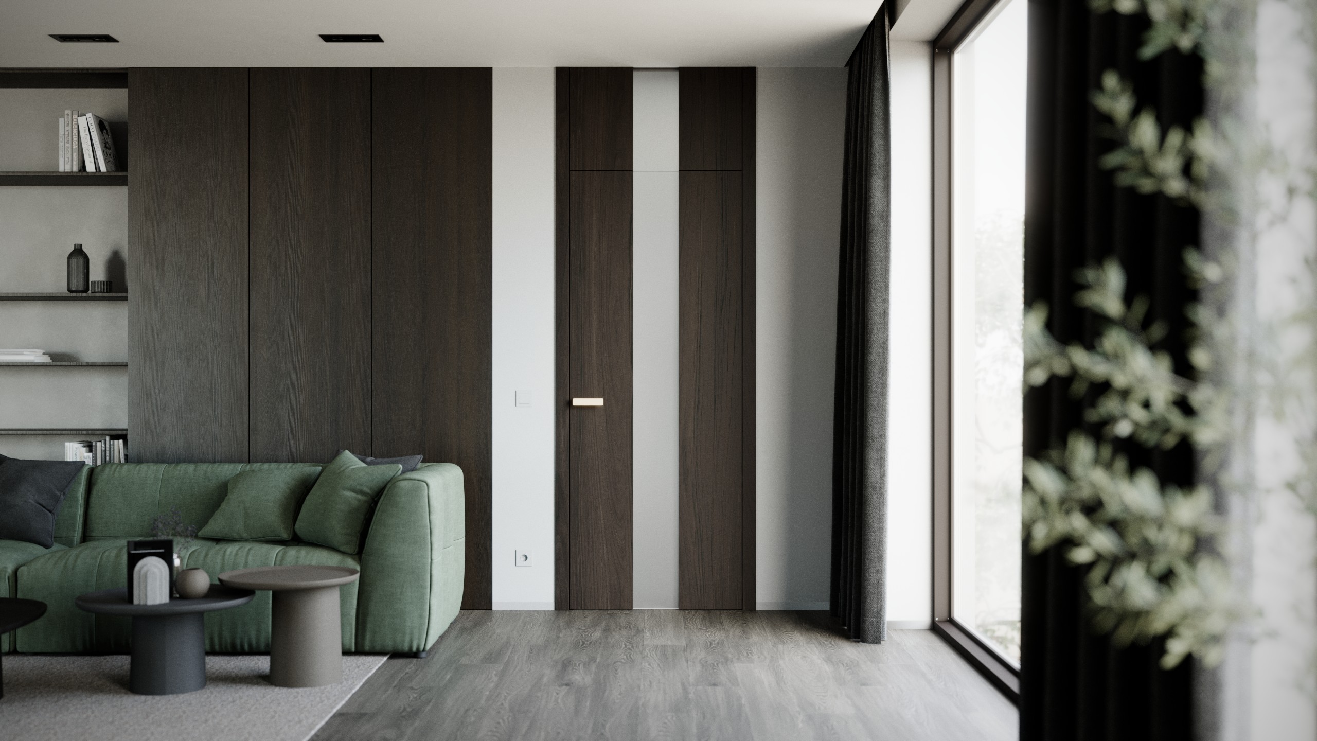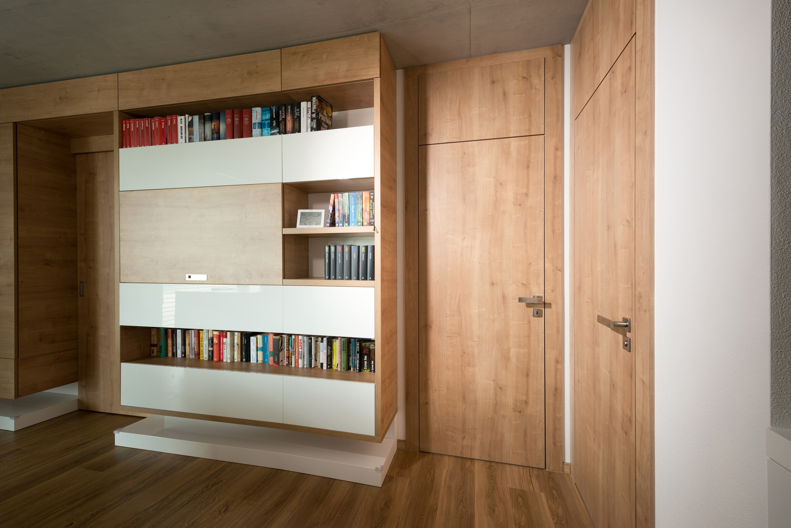 • Nejčastěji v kombinaci se skrytými zárubněmi, nahoře u stropu už není žádný rám či obložka, pouze křídlo a stěna.
