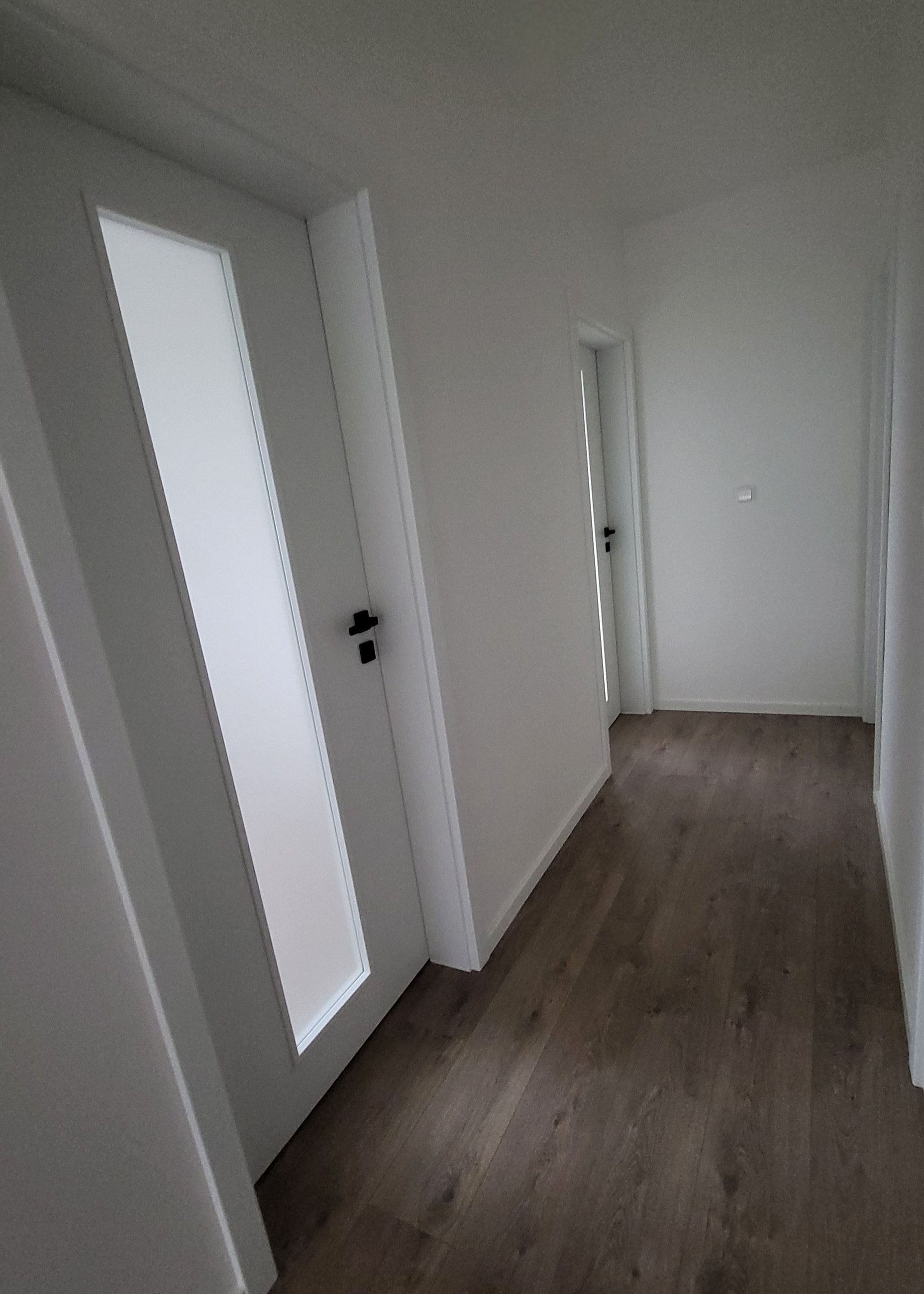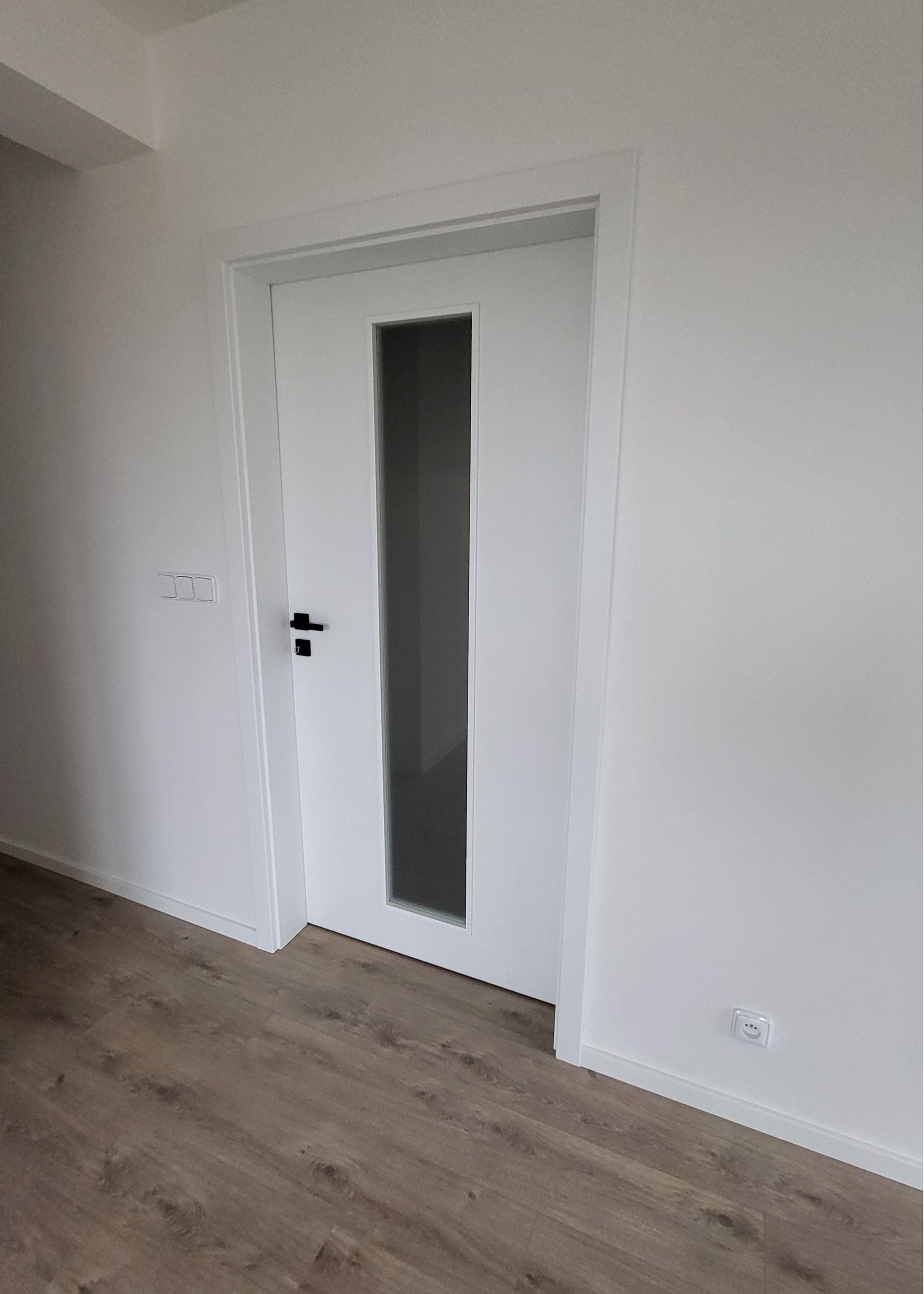 V interiéru byla prioritou vizuální čistota a schopnost materiálu odolat každodennímu provozu. „Volba barevného provedení byla poměrně jednoduchá, jelikož máme koupelny v kombinaci dvou šedých odstínů s bílou keramikou a černými bateriemi a podlahy v obytných místnostech jsou v provedení světlejšího dubu, tak nám bílá barva dveří přišla jako jediná vhodná,“ popisuje logiku rozhodování Pavel Suk. Pro interiérové dveře byl zvolen povrch CPL bílá pór, který svou jemnou strukturou a mechanickou odolností přesně odpovídá nárokům na moderní bydlení.