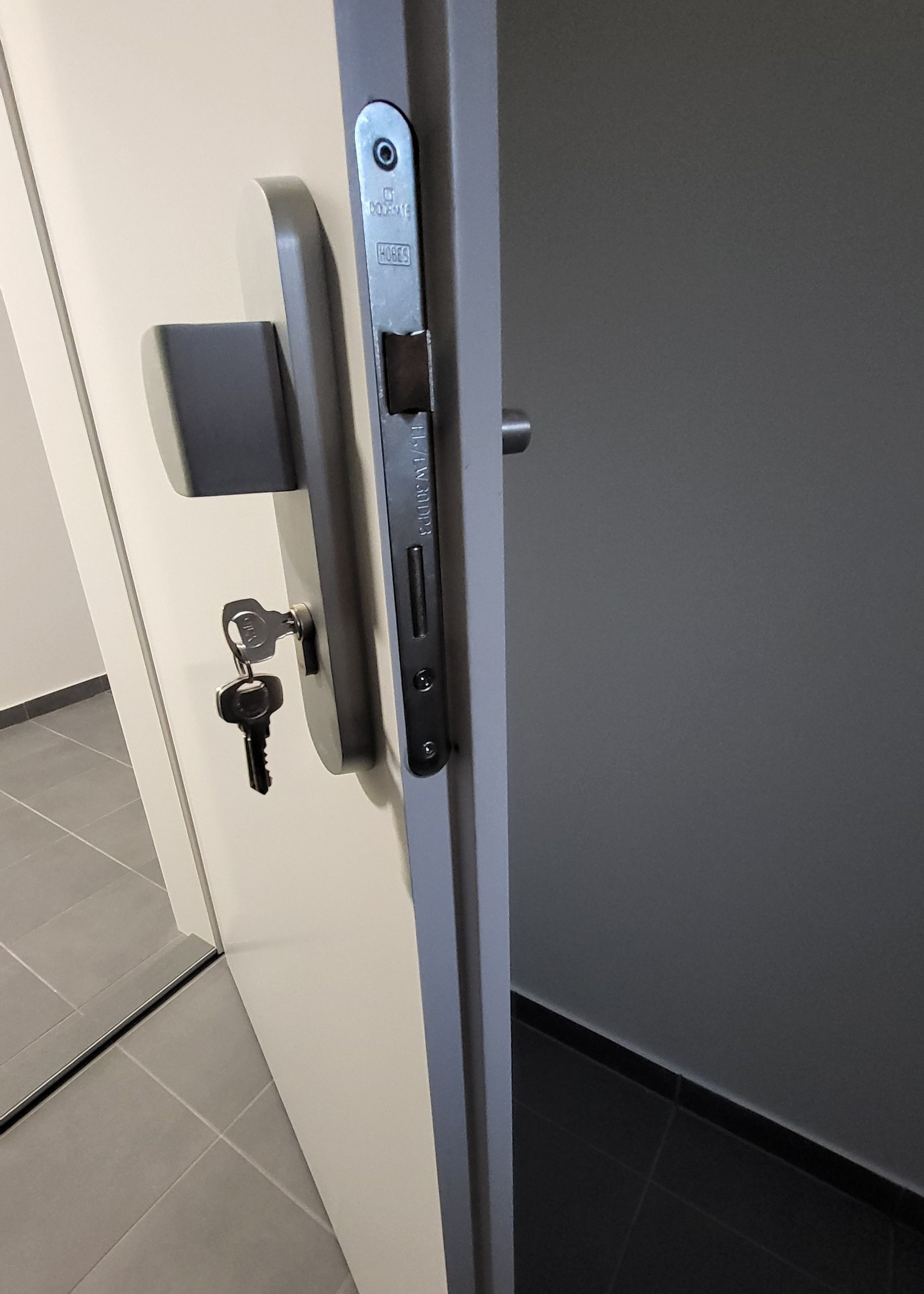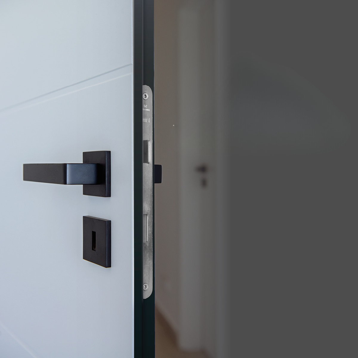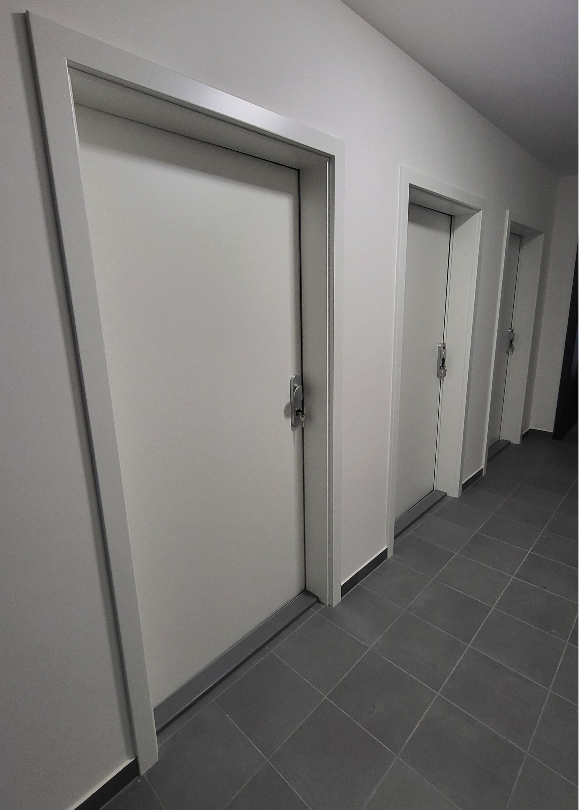 Jedním z důležitých úkolů bylo najít dveře, které zajistí klid u vstupů a vizuálně sjednotí moderní interiér s exteriérem stavby. Vstupní dveře do bytů Lume Extra Acoustic (EI1 30-C4/DP3, 34 dB) tvoří bariéru mezi ruchem ze společných chodeb a soukromím obyvatel. Řada speciálních dveří Doornite zajišťuje kromě akustiky také požární odolnost (v Uničově s certifikací EI 30), bezpečnost a v případě potřeby i kouřotěsnost.