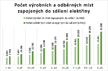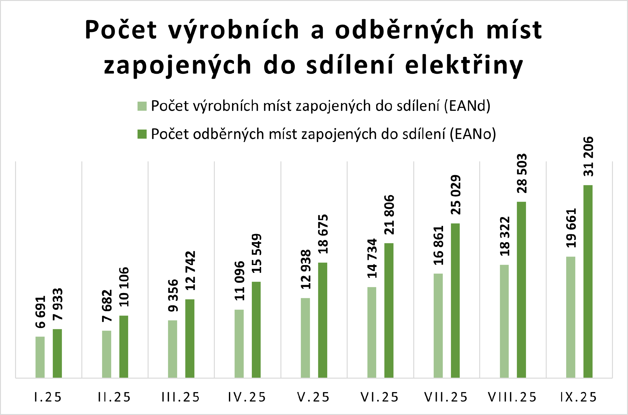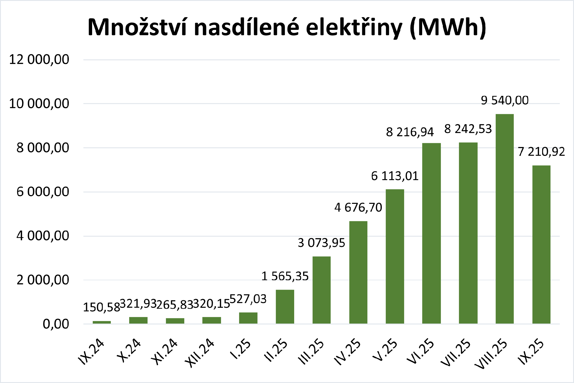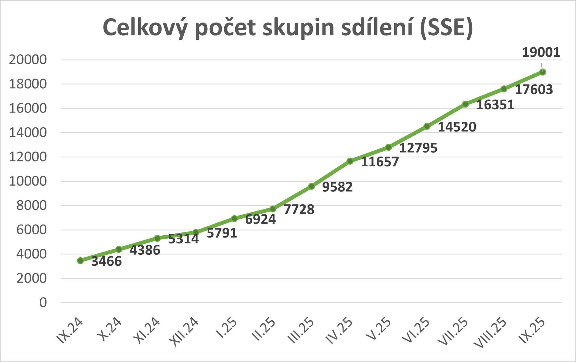 Rok od prvního přenosu sdílené elektřiny přesáhl její celkový objem v České republice hranici 50 GWh. To odpovídá průměrné roční spotřebě 16 000 domácností. Elektroenergetické datové centrum (EDC) ke konci září eviduje také již více než 19 000 skupin sdílení a desítky tisíc registrovaných odběrných a výrobních míst.
