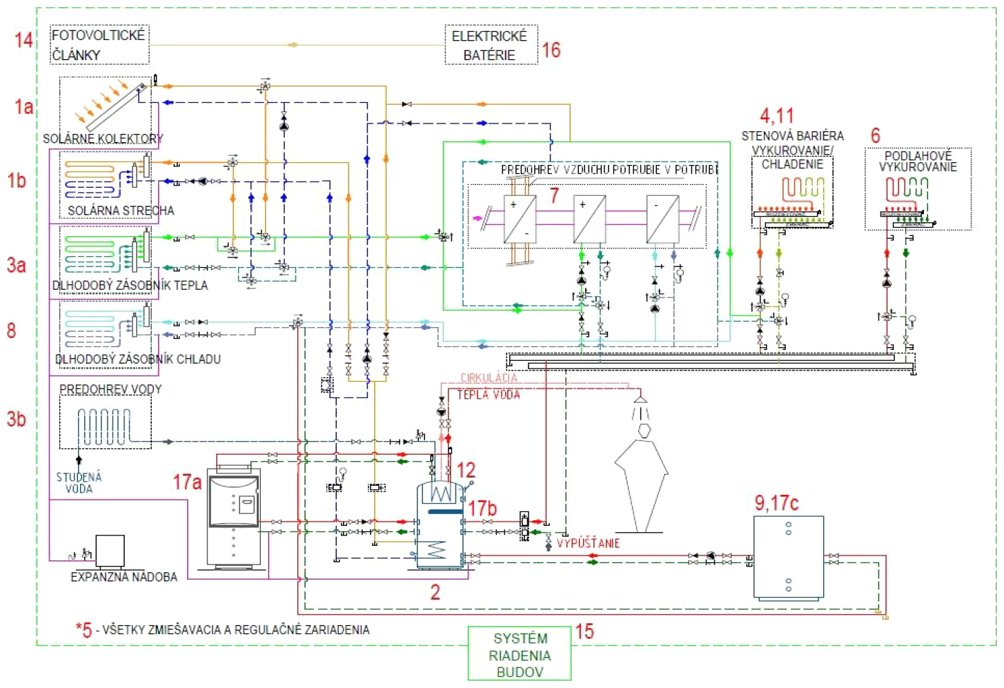 - pasívne chladenie obvodového plášťa s využitím studenej vody z verejného vodovodu na chladenie/predohrev TV pomocou ATO na exteriérovej strane,