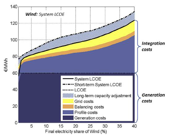 Stoupání nákladů na integraci větrných zdrojů s jejich rostoucím podílem v energetickém mixu