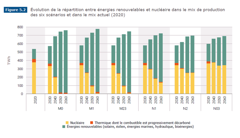Scénáře Futurs énergétiques 2050 (od „obnovitelných“ po „jaderné“)