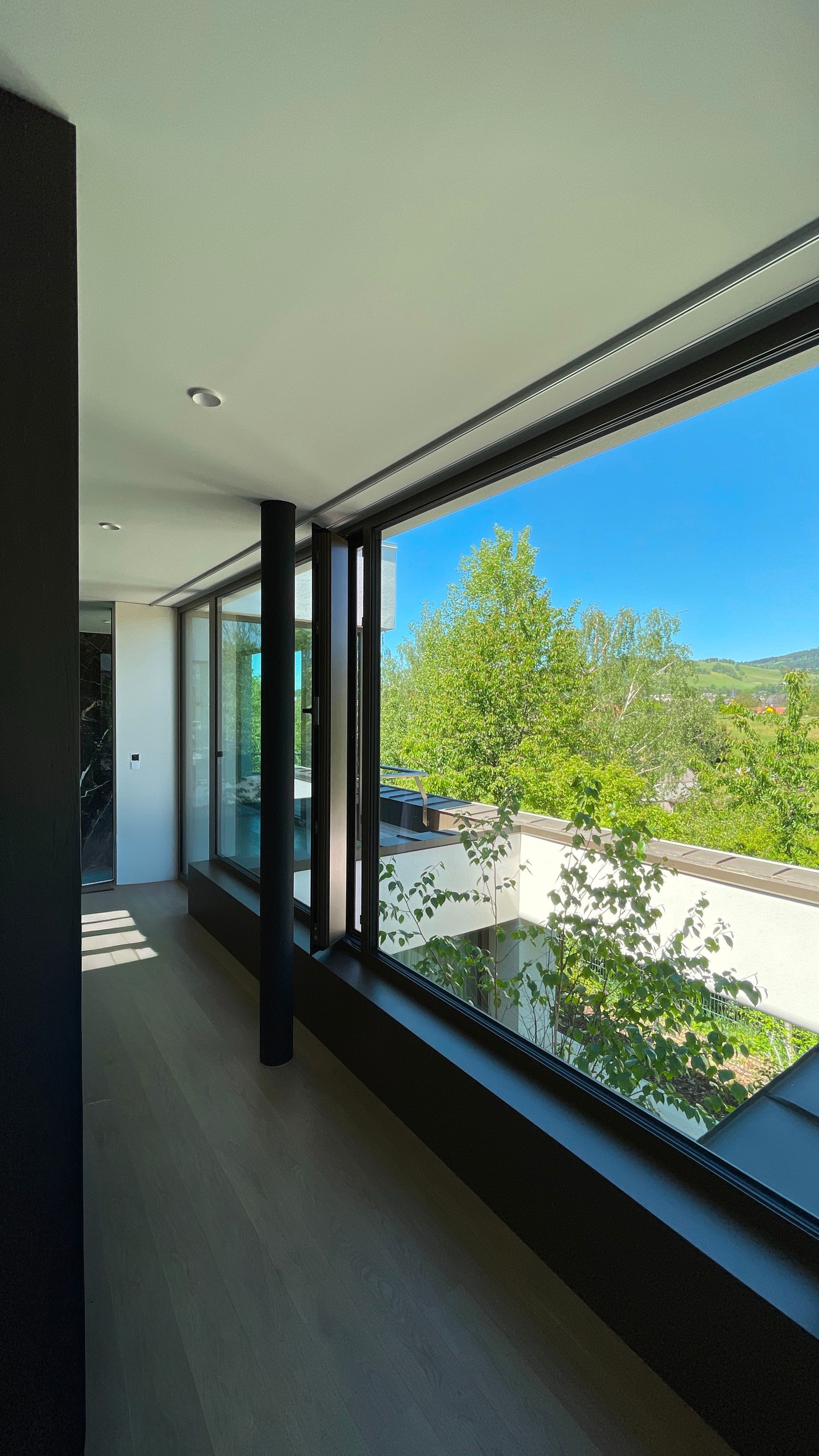 Současná architektura staví na velkých prosklených plochách, čistých liniích a na snaze eliminovat vše, co by narušovalo harmonii interiéru i fasády. Hliníková okna WELL OKNA tyto požadavky splňují díky kvalitním profilům Schüco, vysoké tuhosti a širokým možnostem designového provedení. Skryté větrací křídlo tuto koncepci ještě posiluje – umožňuje větrat tak často, jak je potřeba, aniž by se otevíralo velké okno a rušila panoramata.