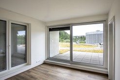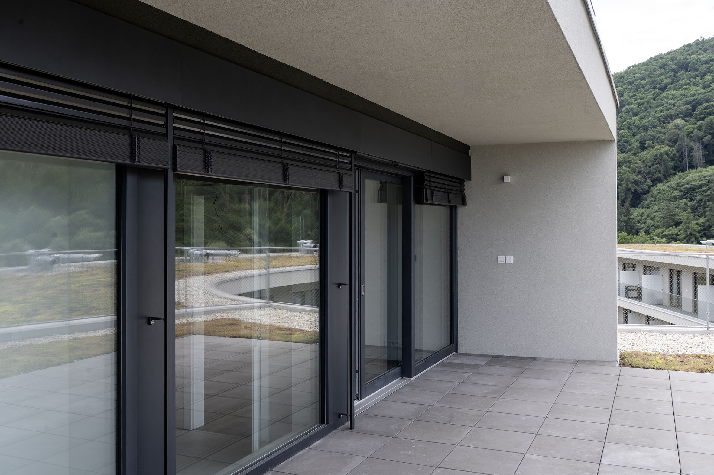V rámci architektonického řešení projektu DIORIT se kladl mimořádný důraz také na estetiku oken. Interiér pracuje s čistou bílou, která podtrhuje světlo a vzdušnost bytů, zatímco exteriér získává elegantní charakter díky odstínu Oxide 5 použitému u většiny okenních prvků. Sestavy se širokými HS portály ve štítových stěnách pak dostaly výrazný tón Blau 2600, jenž zdůrazňuje jejich jedinečné měřítko.