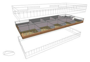Obr. 5 Schematický rez referenčnou administratívnou budovou