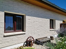 Fasády Stavoblock - lehčený betonový fasádní obklad na bázi expandovaného skla. Materiál zabraňuje průchodu vodních srážek ke zdivu, a naopak umožňuje odvod vlhkosti z interiéru vašeho bytu. Zajistí těsnou izolaci, je stabilní díky samonosnému zavěšení každé cihly a vytrží až 50 let bez oprav. Systém dokáže ušetřit až 40 % prostředků za vytápění.