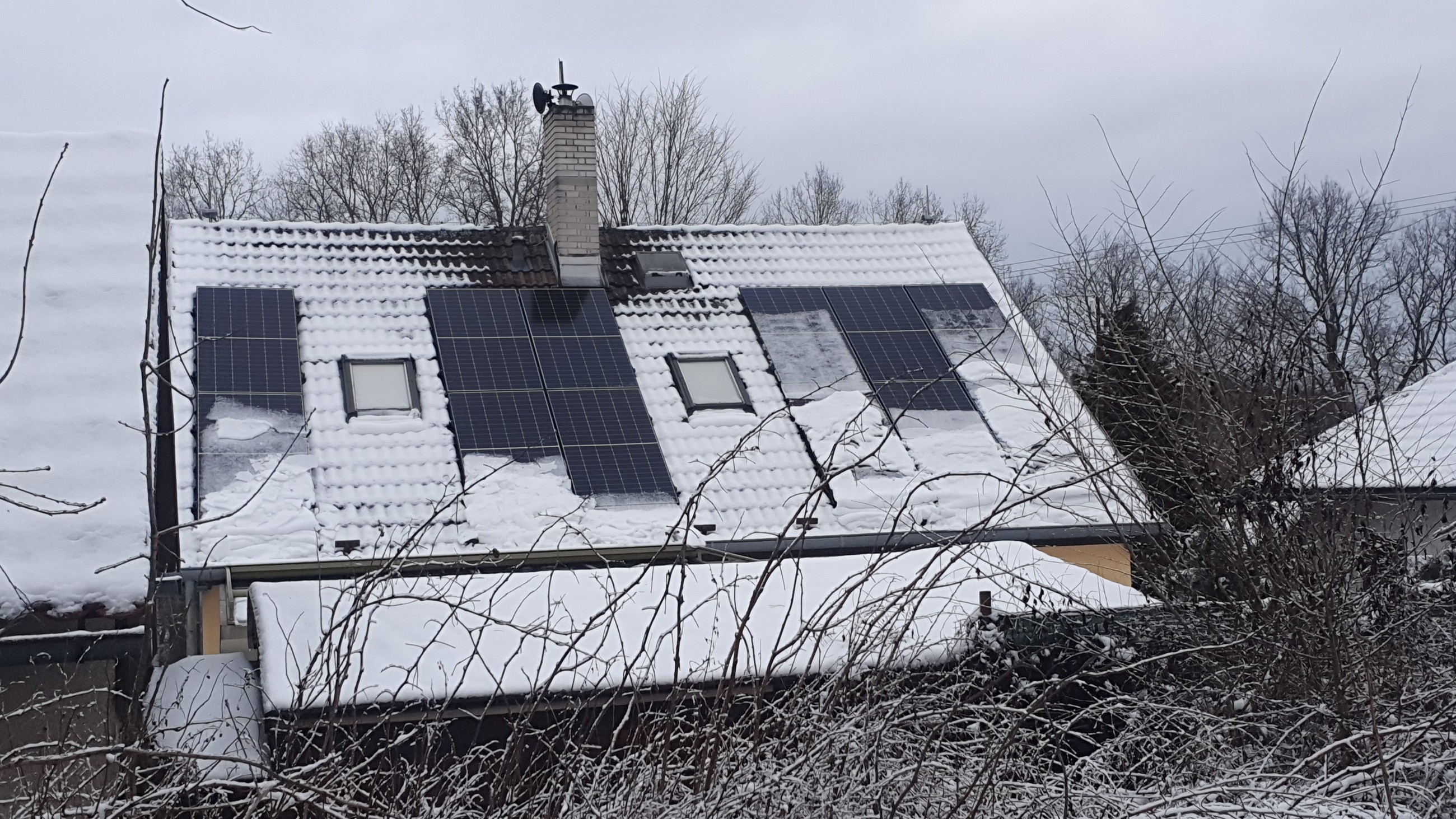 Ilustrační obrázek: Solární panely na rodinném domě v zimě, foto © TZB-info