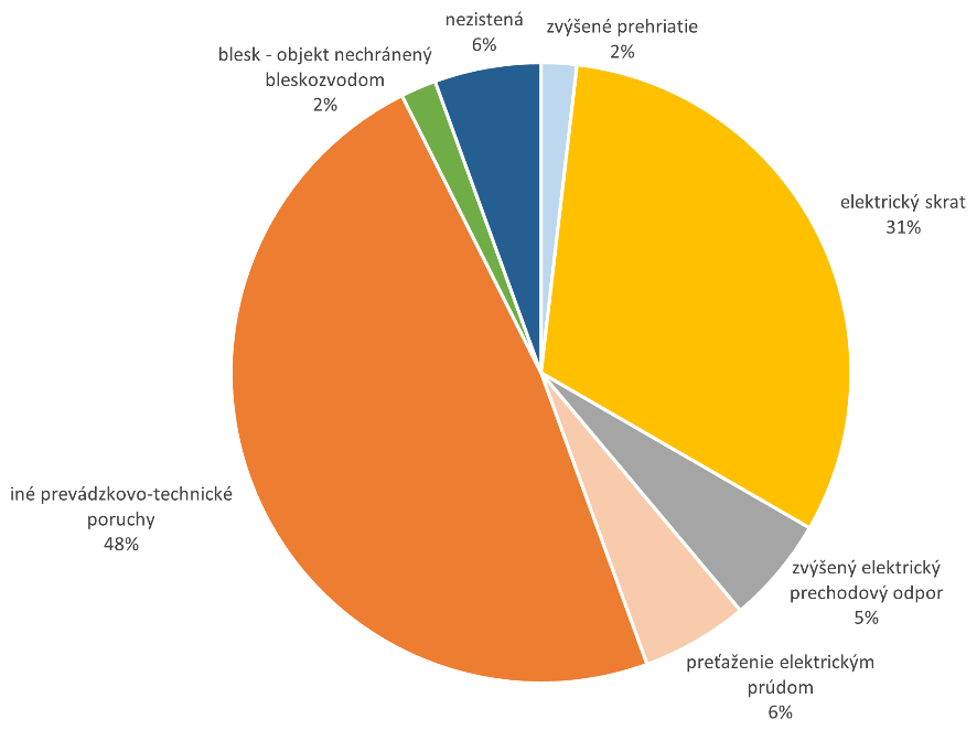 Analýza príčin vzniku požiarov na Slovensku, vychádzajúca z údajov Požiarnotechnického a expertízneho ústavu MV SR (PTEÚ), identifikuje ako dominantné faktory technické zlyhania komponentov a inštalácie. Podľa interných štatistík, stanovených zisťovateľmi príčin vzniku požiarov, tvoria najväčší podiel iné prevádzkovo-technické poruchy (48 %) a elektrický skrat (31 %). Ďalšími identifikovanými príčinami sú preťaženie elektrickým prúdom (6 %), zvýšený prechodový odpor (5 %), zvýšené prehriatie (2 %) či priamy zásah bleskom v objektoch bez bleskozvodu (2 %) [2].