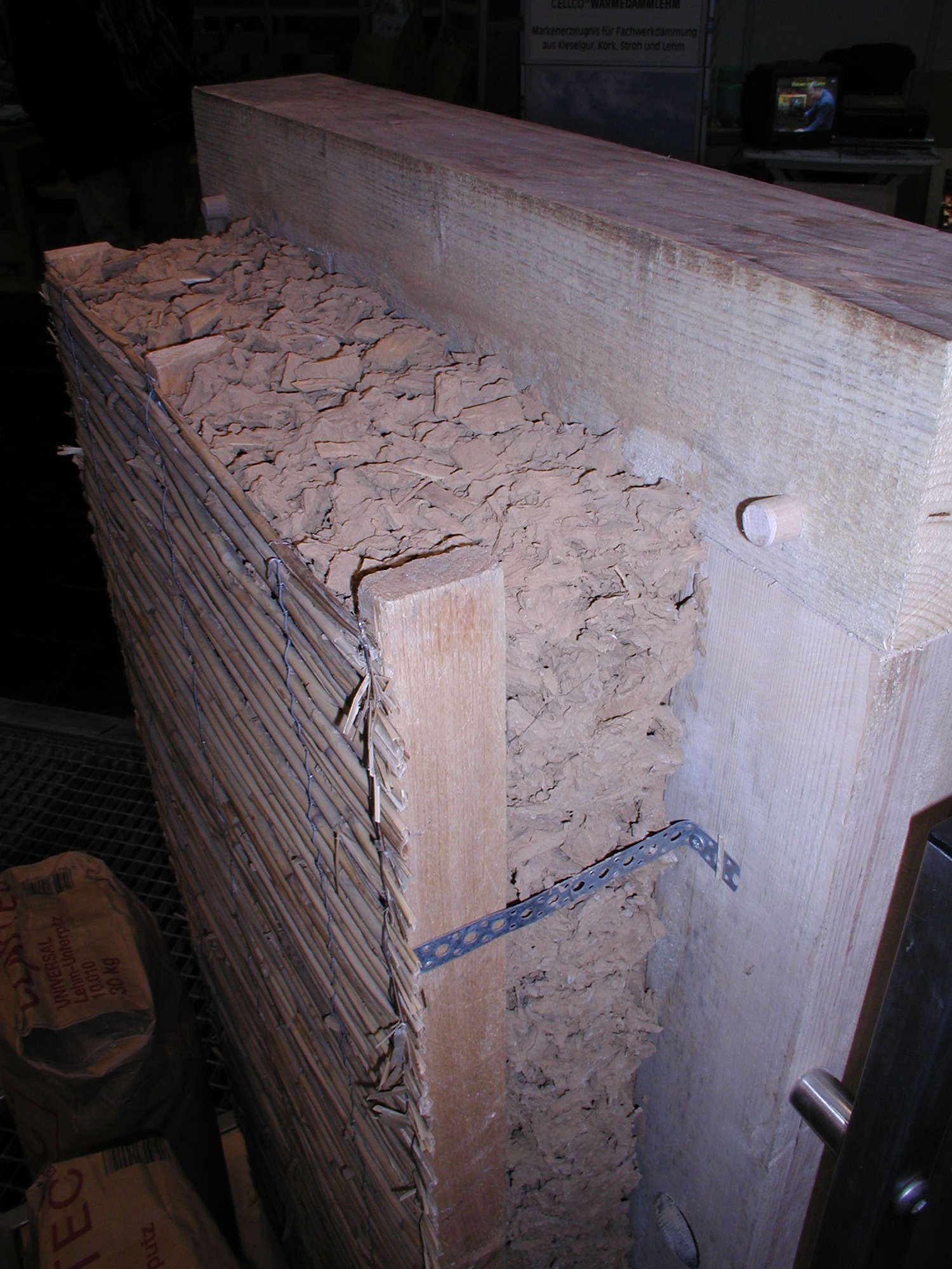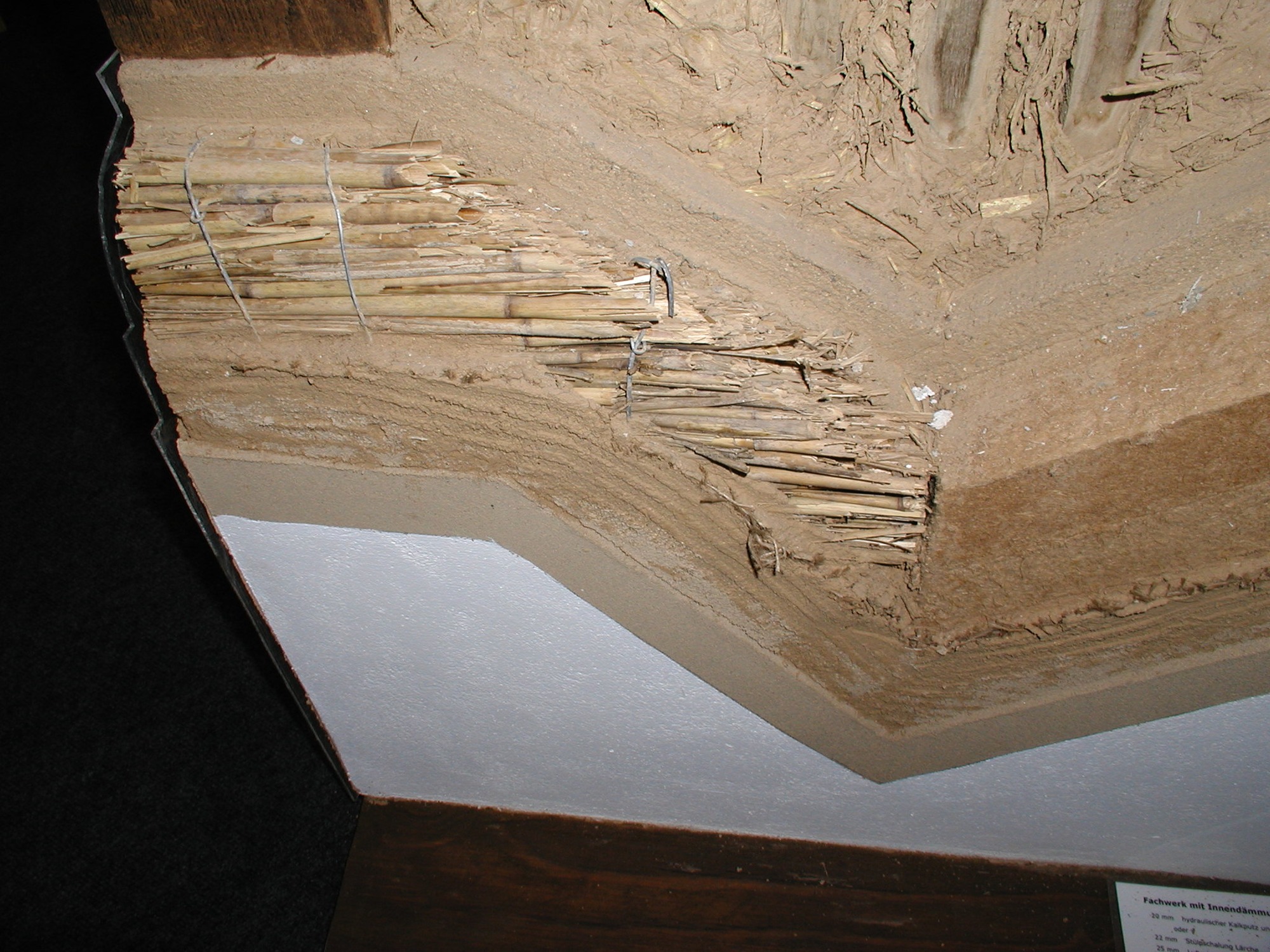 Obr. 4: Tradiční hliněná omítka nanesená na rohoži z rákosu (tzv. rákosová omítková rohož / rákosovina)