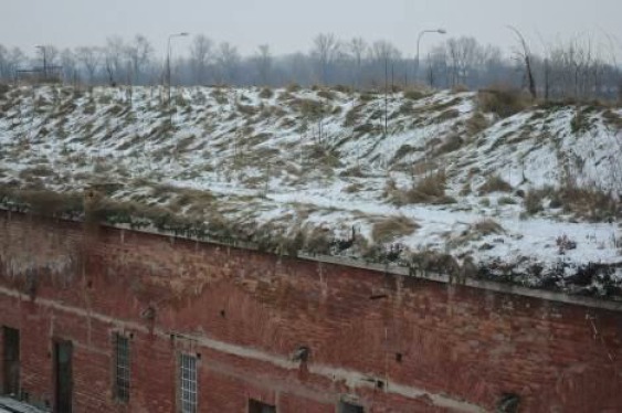 Obr. 3. Na obrázku vidno rozdiel vo sfarbení muriva pod a nad ílovou izoláciou kazematov Starej pevnosti v Komárne, čo dokazuje, že táto izolácia tu funguje.