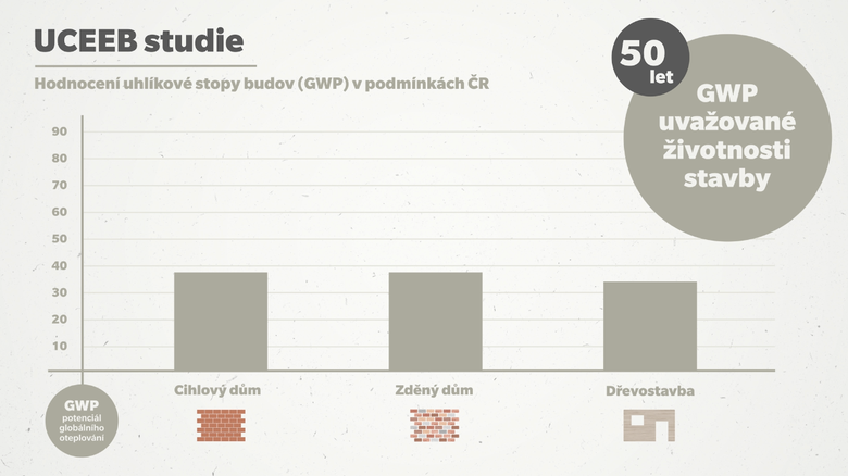 Výsledky nové studie Posouzení LCA projektu rodinného domu Zina Mikulčice1, kterou zpracovalo Univerzitní centrum energeticky efektivních budov ČVUT (UCEEB), však ukazují, že rozdíly v environmentálních dopadech při výrobě a provozu jsou mezi zkoumanými konstrukcemi, tedy pálenou cihlou, pórobetonovou tvárnicí a dřevěnou sendvičovou konstrukcí, minimální. Klíčovým faktorem udržitelnosti je podle studie především celková energetická náročnost, provoz budovy a životnost stavby.