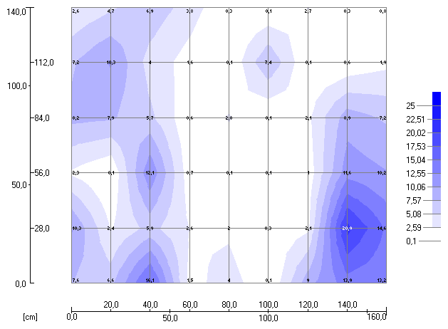 Obr. 3: Měření vlhkosti zdiva MOIST 430, rozložení vlhkosti – osamocené vlhké body