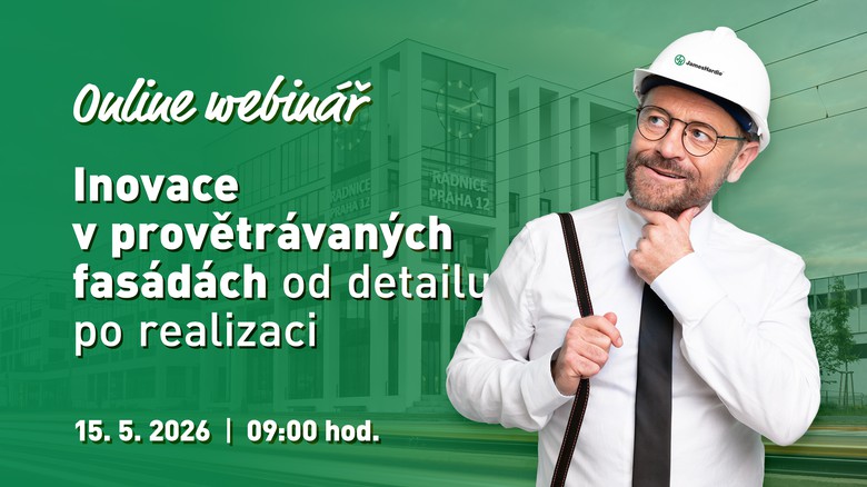 Webinář se uskuteční v pátek 15. května 2026 od 9:00 hod.. Přednášejícími budou Dipl.-Ing.(FH) Jaroslav Benák, technický ředitel James Hardie Europe a Milan Duhan, Key Account Manager pro fasády James Hardie Europe.