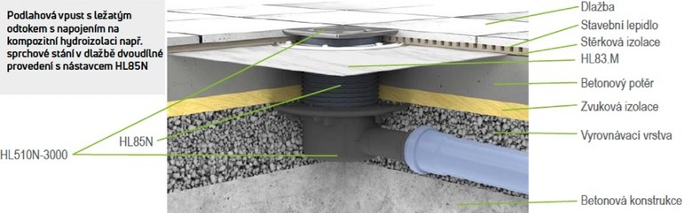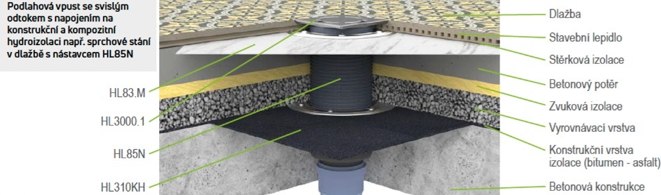 S nízkou stavební výškou se podlahové vpusti HL dají umístit do všech skladeb podlah s dlažbou nebo stěrkovou podlahou. Mezi nejnižší podlahové vpusti patří např. HL90Prblue, HL541 a HL542Prblue.